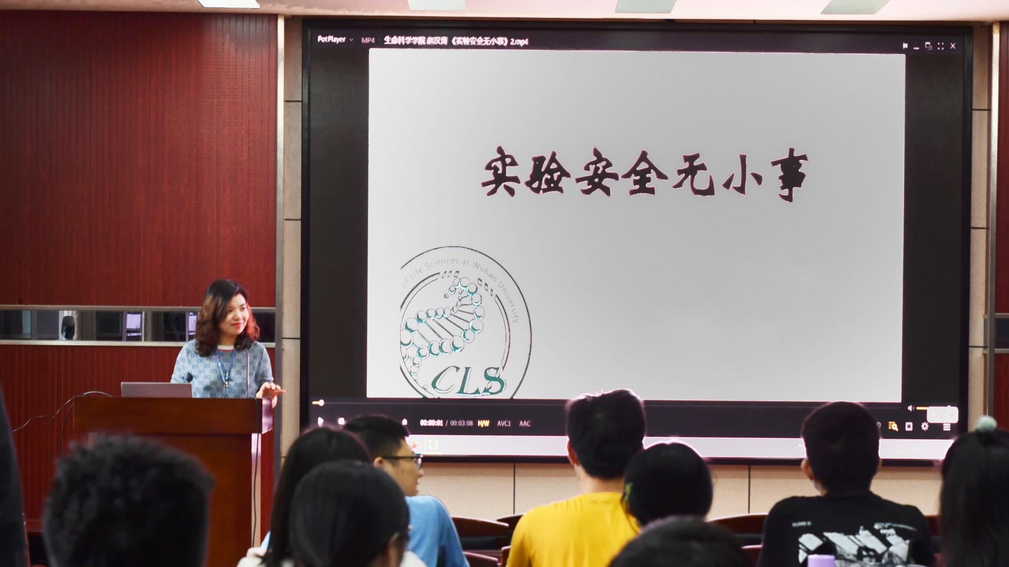 研究生辅导员梅菲带领大家观看了实验安全教育宣传片,强化了与会师生对实验安全相关知识的理解。