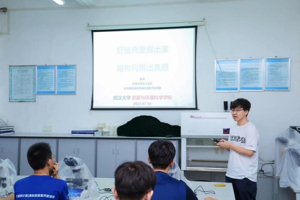 学院赵泽老师对环境科学领域做详细介绍,在多位辅导老师的带领下,学员们观察了花粉颗粒的微观形貌,了解了生物质资源潜在应用领域,还现场进行了虾蟹壳变废为宝的实验。