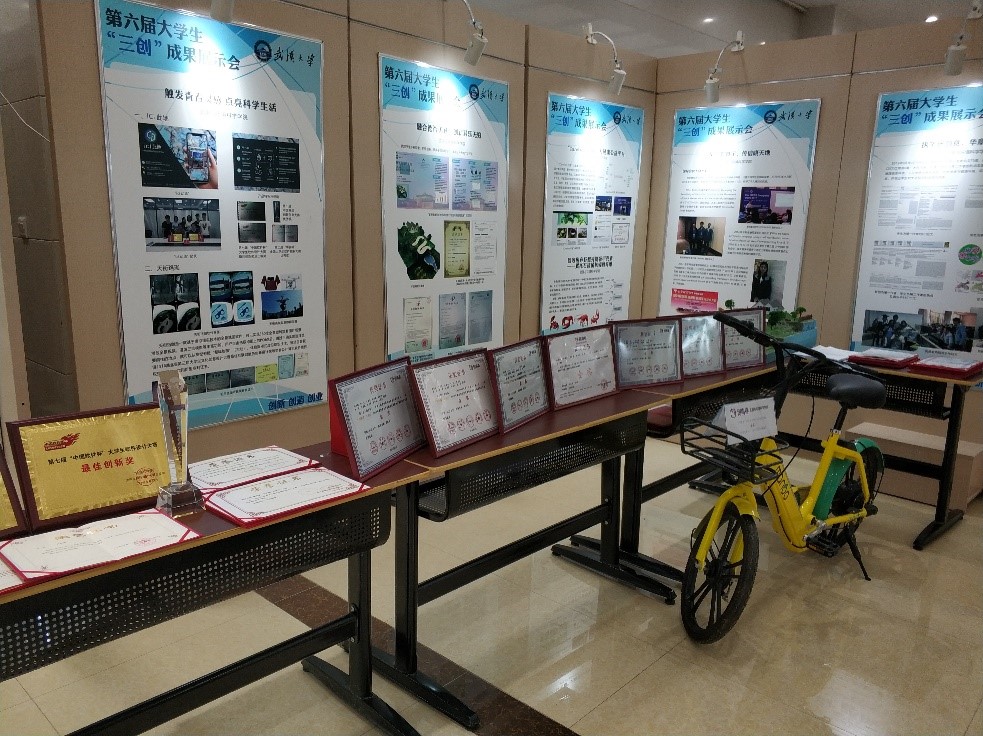 学院通过遴选,以科研项目、发明专利、创青春、国际会议和论文发表为主题,布置了展区,将学院大学生“三创”成果进行了遴选和展示。科研项目板块,选择了ici此地和天街珞珈两个项目为代表作,展示了学院学子在软件开发和VR应用领域类的应用与创新能力;发明专利板块,将基于肠道仿生的无动力农村生活污水处理设施作为代表作,展示了澳门美高梅 学子丰富的想象力与创造力;创青春板块以“careforu可福”大健康公益平台和芒果电单车项目为代表作,它们分别获得2018年创青春湖北省以及全国大学生创业大赛金奖,成果突出;国际会议板块,澳门美高梅 学子共参与了11次国际会议,展现了澳门美高梅 学子宽阔的国际视野;论文发表板块,澳门美高梅 学子成果颇丰,在SCI、SSCI、EI等核心期刊发表多篇文章,彰显了资环学子对学术科研的执着与热爱。
