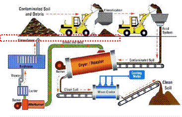 主要创新点:集加热有机污染土壤,分离有机污染物,冷却、回收污染物于一体。无有二次污染;最终检测排放最小;耗能低,效率提高1倍;设备灵活,可移动、现场处理,低运费,占地小。