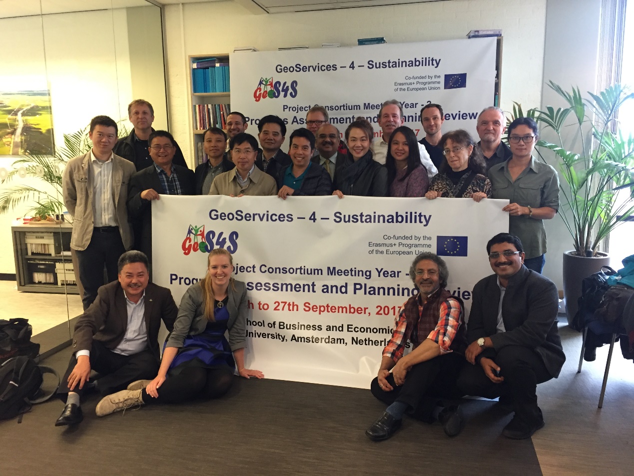 2017年9月25至9月27日,欧盟ERAMUS+联合教育项目GeoS4S(GeoServices-4-Sustainability)的工作会议在荷兰的阿姆斯特丹自由大学(Free University of Amsterdam)举行。来自奥地利、捷克、德国、荷兰、泰国和中国等欧亚6个国家的10个院校的20多位教师参加了此次会议。