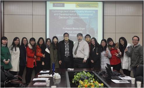2016年1月18日上午,应澳门美高梅 张万顺教授的邀请,美国普渡大学农业与生物工程系主任Bernard Engel教授参观澳门美高梅 流域水环境模拟与仿真实验室,并在澳门美高梅 320会议室做了主题为“水文水质模拟及环境决策信息系统的发展”的学术报告,澳门美高梅 、水利水电学院、计算机科学学院等学院师生和湖北省环境监测站等单位人员参加了会议。Bernard Engel教授对SWAT模型在美国伊利湖的应用进行了详细的分析,阐述了最佳流域管理措施(BMPS)及低影响开发理念,对其开发的L-THIA-LID、Distributed-Clark流域模型的优点进行了详细介绍,针对目前流域模型中降雨的处理,提出了新方法。同时针对SWAT模型参数众多、率定量大这一问题,提出了满足高精度下采用模型三参数来解决问题的方法。报告内容丰富,具有较强的启发性,参会师生就流域环境模型的大范围应用、模型控制精度等方面与Engel教授进行了热烈讨论。Engel教授与张万顺教授研究团队达成长期合作并进行定期学术交流的意愿。