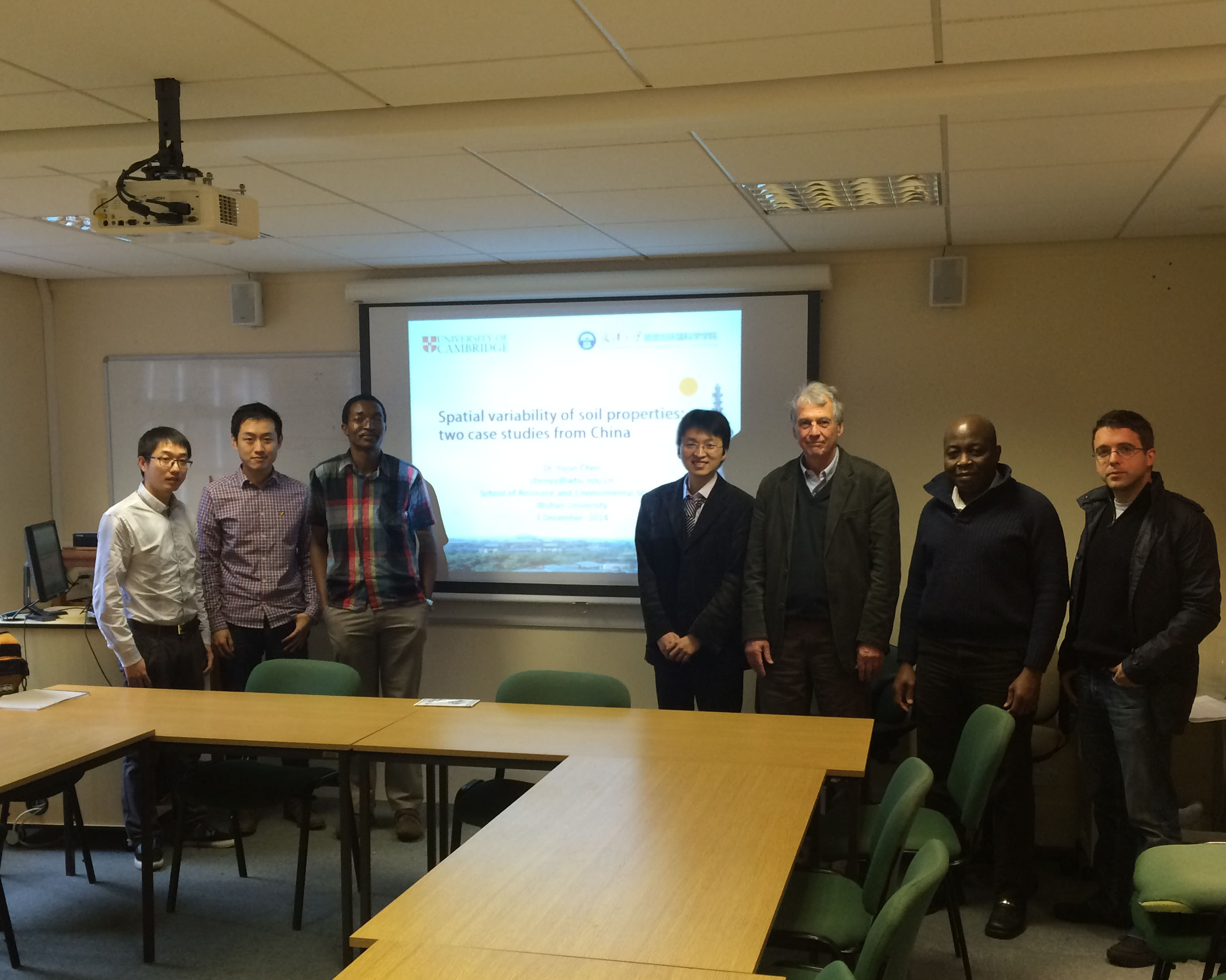 2014年12月3日,澳门美高梅 讲师陈奕云博士受剑桥大学地理系Bob Haining教授邀请,代表澳门美高梅 土壤遥感与地理信息研究小组在剑桥大学地理信息科学论坛做了题为“Spatial variability of soil properties: two case studies from China”的专场报告,并与到场专家学者进行了深入的交流与讨论。