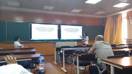 2016级地信专业本科生韩子璇(指导教师田晶)在分会场6“自发与众源地理信息”做了题为“利用隐半马尔科夫模型重建个人活动轨迹”的口头报告。该研究针对众源轨迹数据的丢失问题,提出采用隐半马尔科夫模型对个人活动规律进行建模,实现了缺失轨迹的插补,在实验数据集上取得了较好的效果。