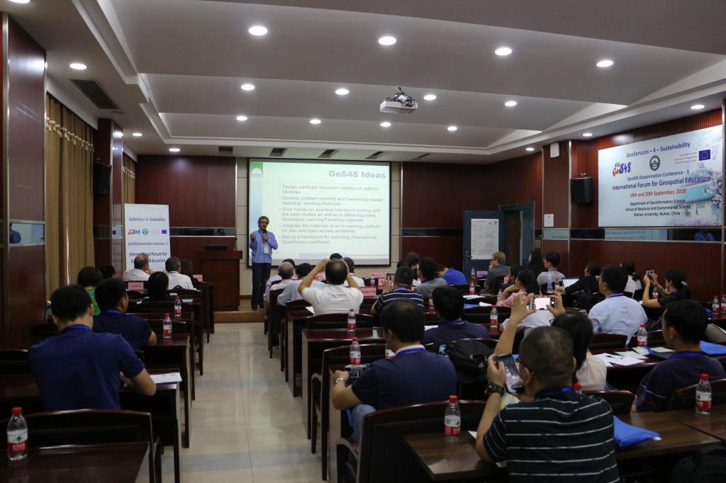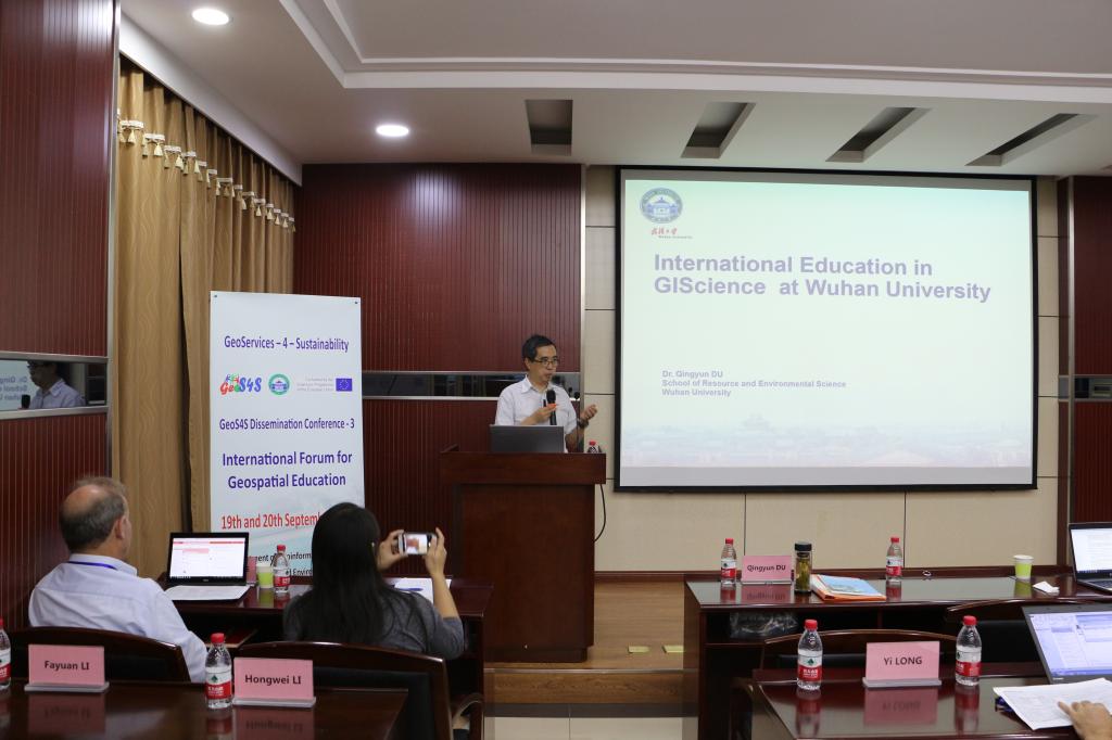 2018年9月19至9月20日,欧盟Erasmus+项目GeoS4S(GeoServices-4-Sustainability)空间教育研讨会在澳门美高梅 顺利召开。来自奥地利、荷兰、泰国和中国等欧亚的40多位教师参加了会议。由杜清运院长带领澳门美高梅 师生组织举办了这次会议。会上,副校长舒红兵代表澳门美高梅 对参会的各国教师代表表示了热烈欢迎,项目负责人Shahnawaz教授对GeoS4S项目做了介绍。杜清运教授做了澳门美高梅 地理信息教育与国际化发展的报告,李霖教授、万幼博士分别就澳门美高梅 承担的“GIS与智能交通系统”和“智慧城市”两门课程的建设成果进行了汇报和讨论。来自荷兰阿姆斯特丹自由大学(Free University of Amsterdam)、泰国清迈大学(Chiang Mai University)、南京师范大学和中国科学院新疆生态与地理研究所等高校及科研院所对所承建的课程进行了介绍,来自北京大学、南京大学、澳门美高梅 、南京师范大学、首都师范大学、西南交通大学等院校的教师对地理信息科学的国际化教育的深入推广和未来规划展开了讨论。会议期间,项目方还向各参会成员赠送了项目在国际期刊《International Journal of Geoinformatics》上组织发表的“GeoS4S课程建设内容专刊,并向参与者与会议组织者颁发了证书。此次会议也是欧盟Erasmus+项目GeoS4S的最后一次总结和成果宣传大会,会议的圆满结束也代表着项目正式告一段落。
