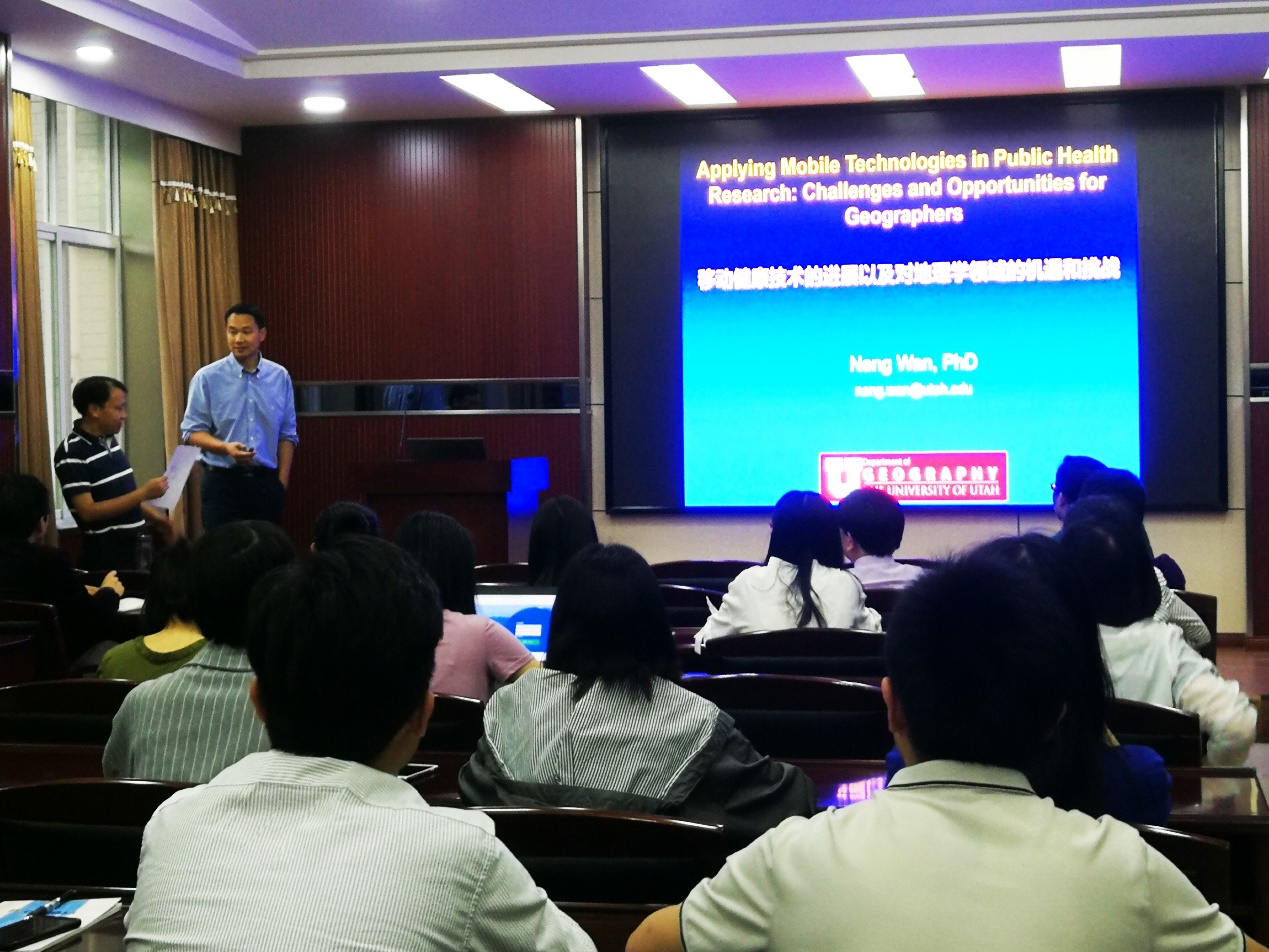 万博士围绕“移动健康”主题,主要介绍了UGHL(the Utah Geo-Health Lab)实验室关于“老年病学”和“控烟”这两个方向的研究。首先讲解了当前存在的人口老龄化问题,并基于Life-space方法分析研究老年人的生活状态。然后分析了引起戒烟者复吸可能存在的影响因素,介绍了基于移动技术的戒烟研究。报告最后,与会师生同万博士就移动健康在中美不同环境下的应用模式差异等问题进行了热烈的讨论,对移动健康在“控烟”等方向上的研究提供了新的思路,同时也激发了学生关于这一主题的思考和研究热情。