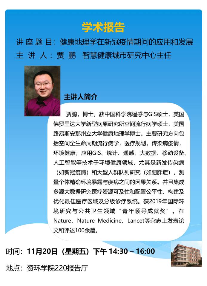 11月20日下午贾鹏博士讲座:健康地理学在新冠疫情期间的应用和发展