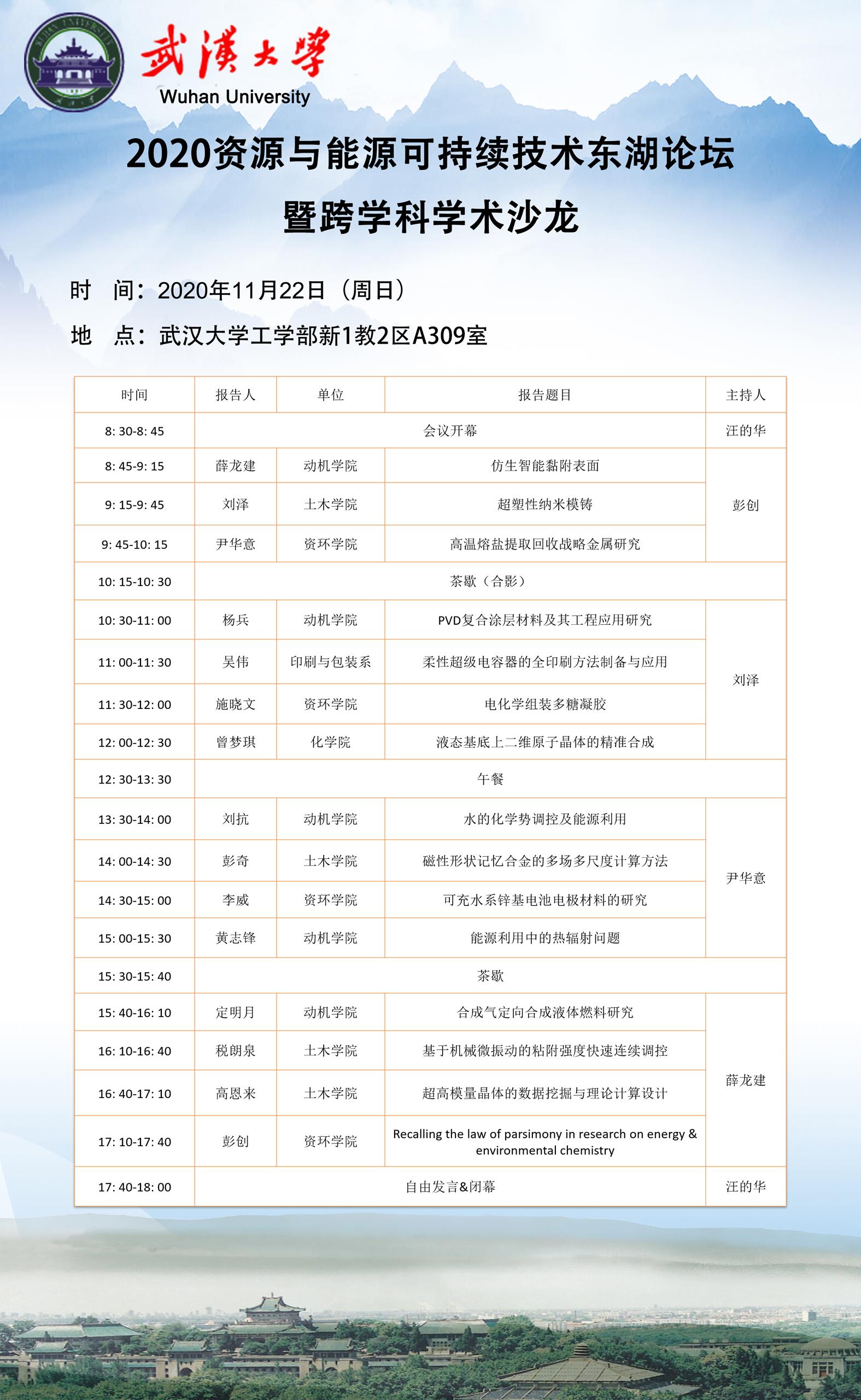 2020资源与能源可持续技术东湖论坛暨跨学科学术沙龙