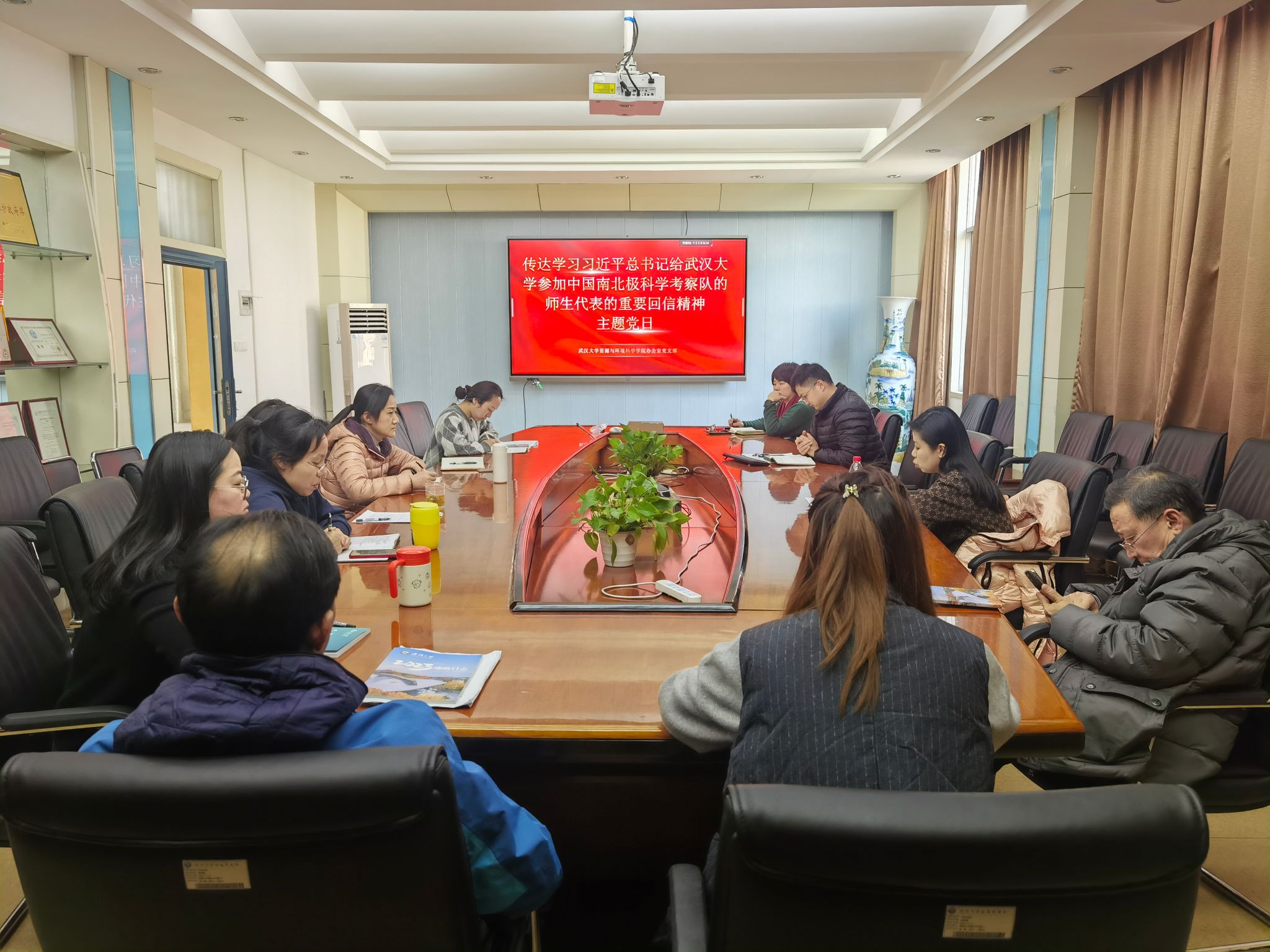 12月27日下午,办公室党支部开展主题党日活动。同志们首先集中学习了习近平总书记给澳门美高梅 参加南北极科学考察队师生代表的重要回信精神,接着,同赴万林艺术博物馆参观“自强担使命,拓新创未来——新时代武汉大学办学成就展”和南极科考陈列展。