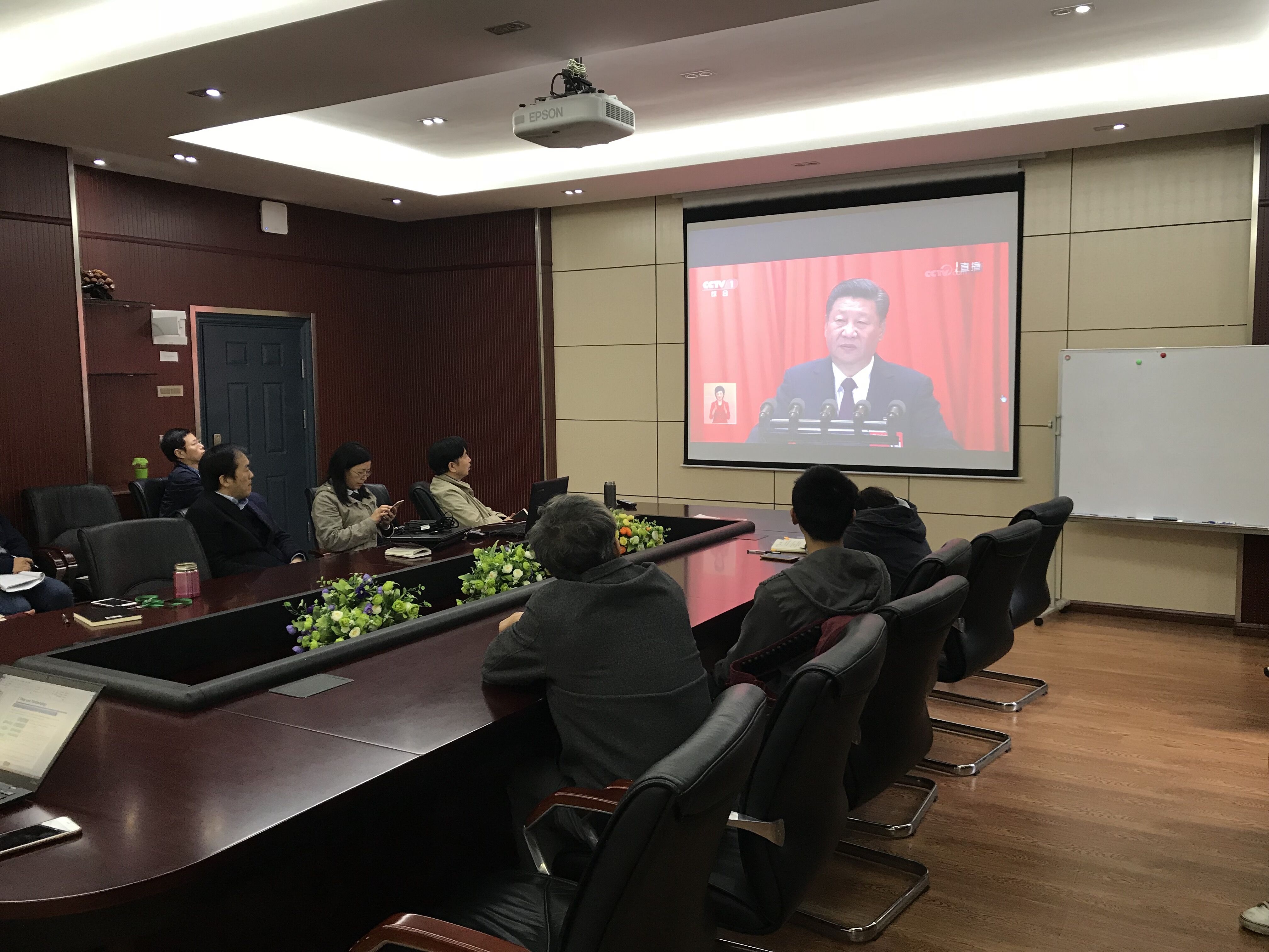 10月18日上午,学院党委组织党员代表在320会议室集体观看中国共产党第十九次全国代表大会开幕会直播。观看人员有学院党委委员、领导班子成员、教职工党支书、学生党员代表和全体辅导员。其他教职工和学生党员以不同的形式和渠道自行观看。