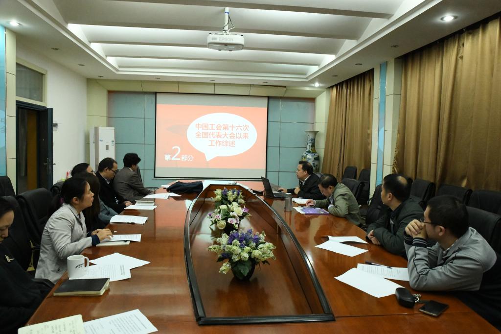11月6日下午,学院工会在院301会议室召开会议,集中学习中国工会第十七次全国代表大会精神。院工会全体委员、各工会小组组长参加会议。