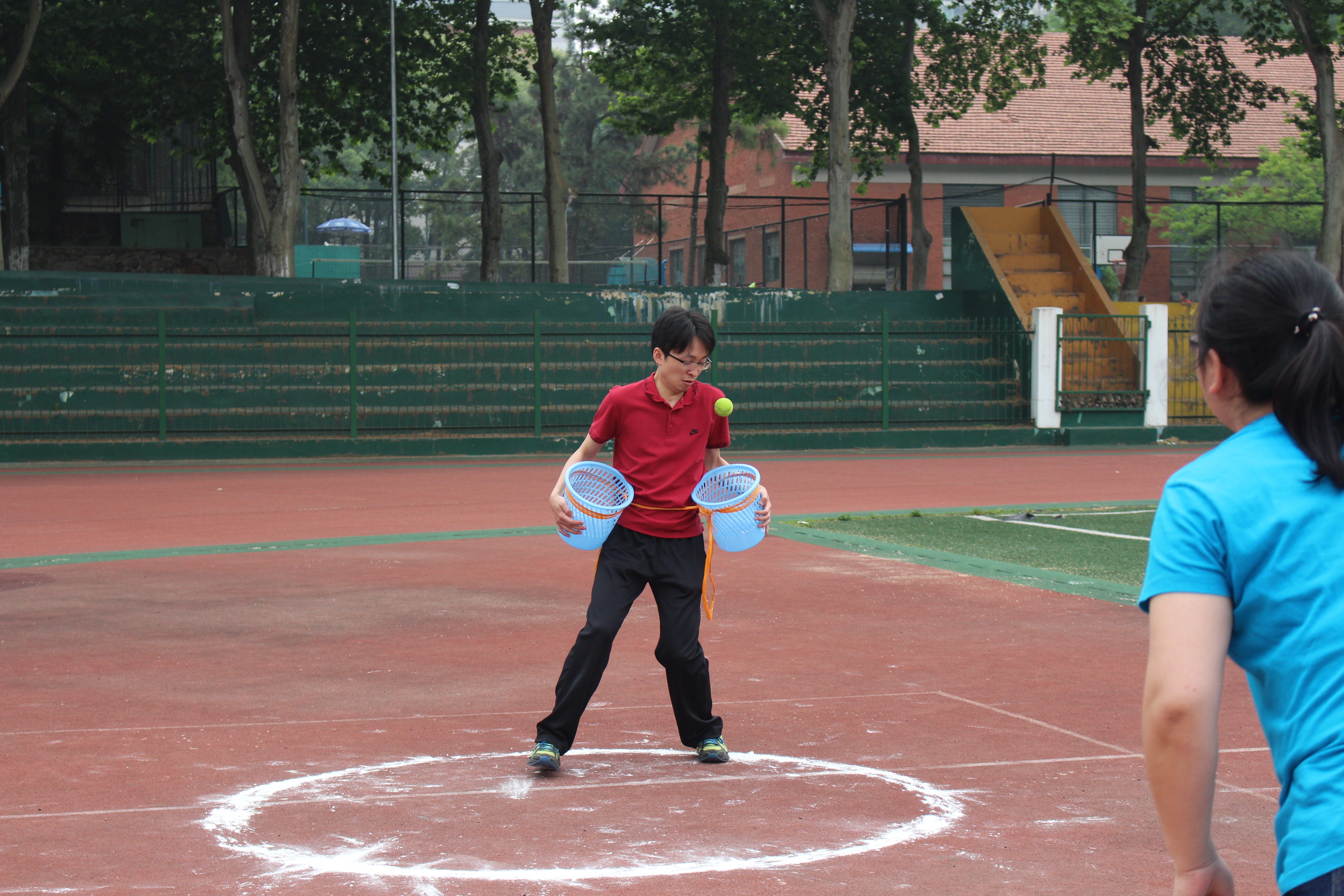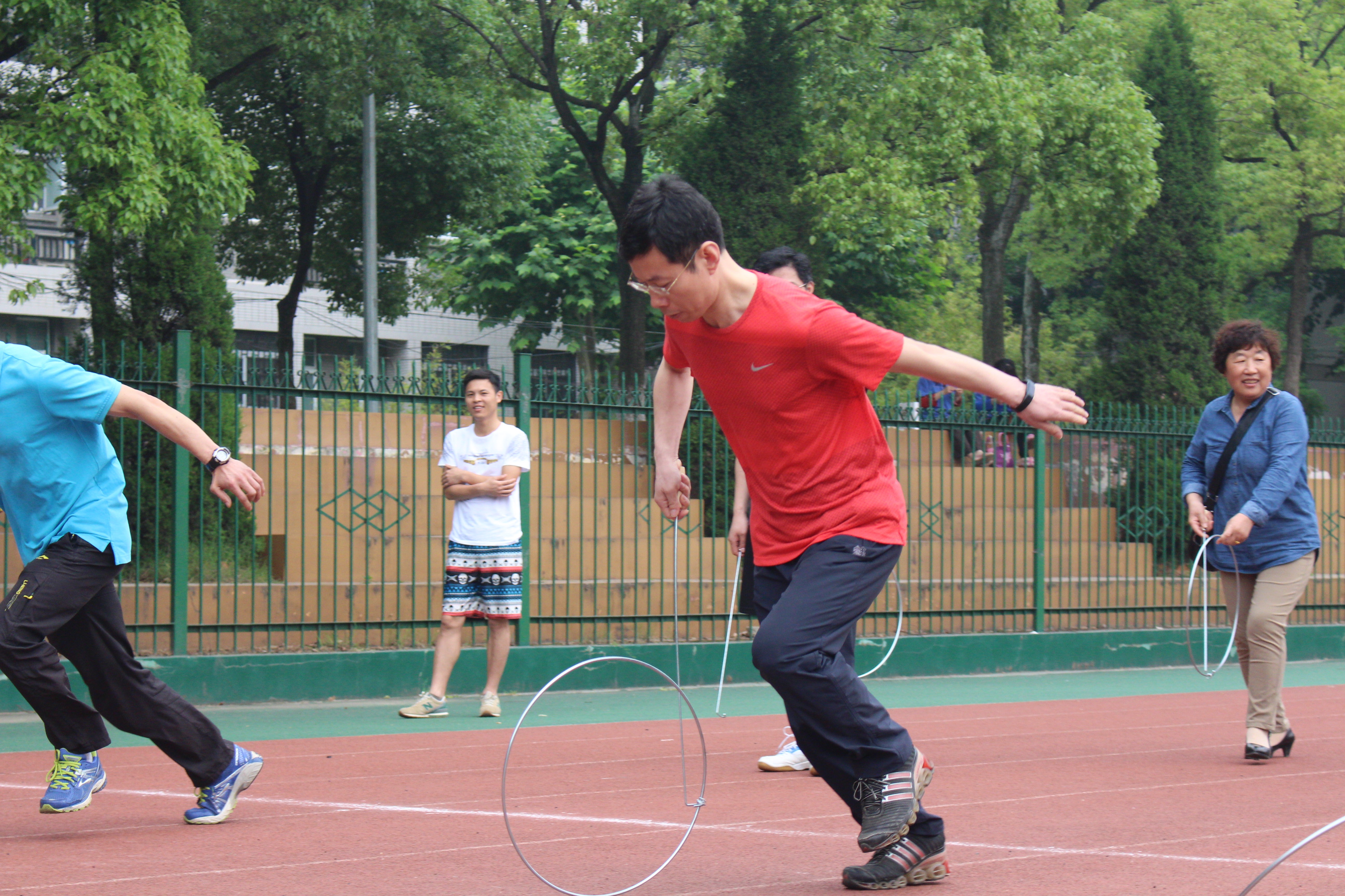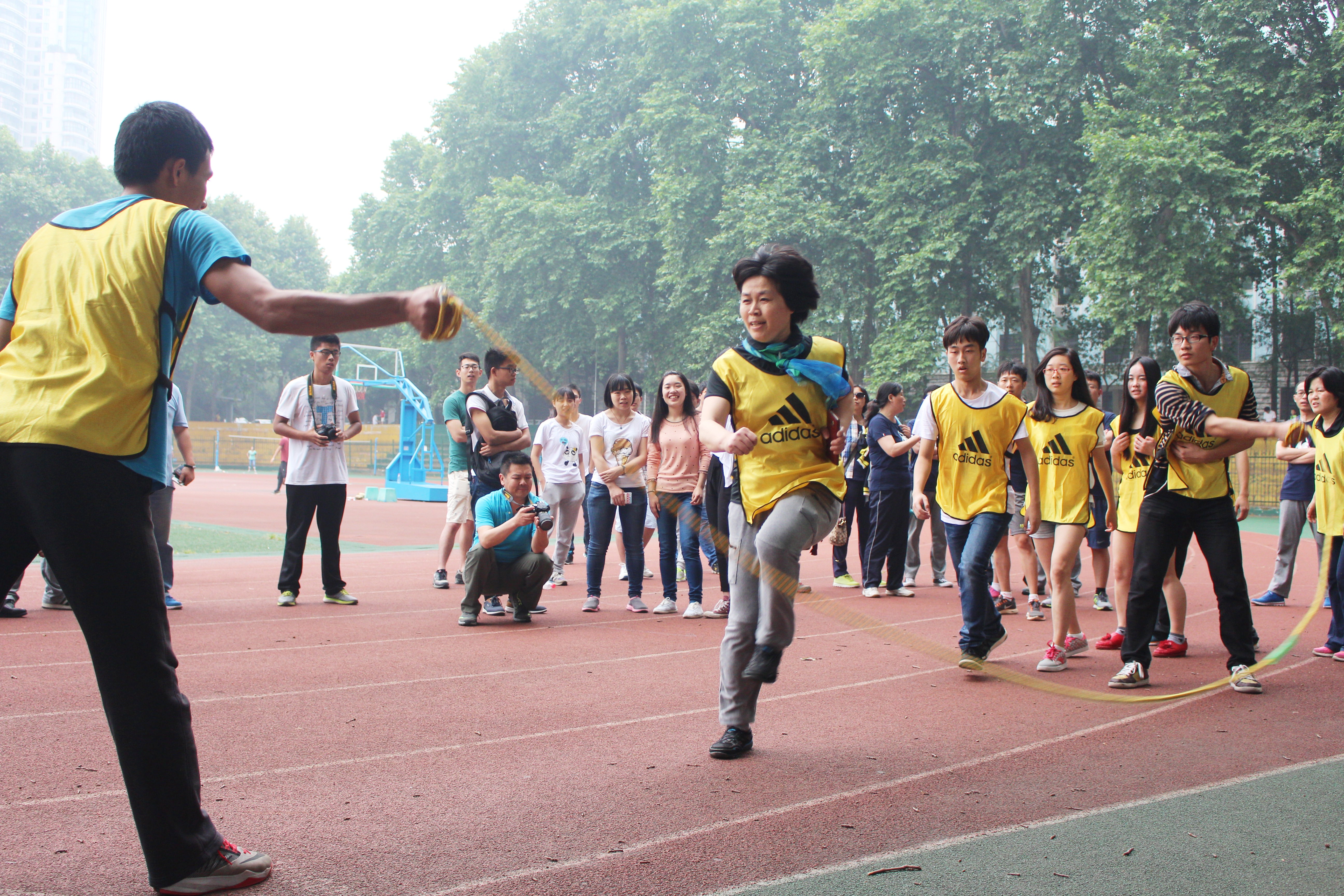 经过中午一场雨水的冲刷,下午的比赛似乎更加激烈。在跳大绳、拔河、50米迎面接力等师生混合项目中,师生们团结一致,一起为比赛商讨最佳分配方案,又一起为最后的胜利而欢呼。在跳大绳比赛和拔河比赛中,几经激烈的较量,环科系夺下两个第一。而在50米迎面接力中,制图系逆转了拔河中的弱势,以默契的配合夺得桂冠。