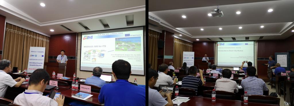 There were about 40 professors from universities spreading in Europe and Asia’s countries joined the conference. Professor Du Qingyun chaired the forum. Vice-president Shu Hongbing extended a warm welcome to participated professors on behalf of Wuhan University. Professor Shahnawaz from University of Salzburg, the chair of GeoS4S, introduced the GeoS4S project and the forum for Geospatial Education.