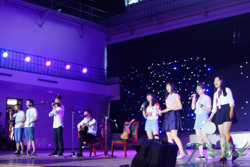 首先是由环境工程系与环境科学系的同学们带来的歌曲串烧《你被写在我的歌声里》。从二人弹唱到众人合唱,从优美的声线到诚挚的深情,每一个完美而真实的展现都牵动了全场毕业生的心。“多少人曾爱慕你年轻时的容颜/可是谁能承受岁月无情的变迁”,动情的歌声在大活内久久荡漾,哀而不伤,深情并茂却有弛有张。