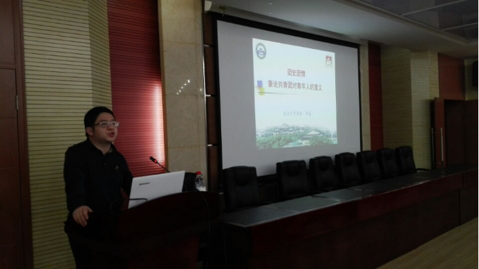 接着黄鑫老师美国梦引申到中国梦,强调了作为一名大学生的社会责任。黄鑫老师以测绘学科为例,告知团员们专业应用的深度和广度有时难以预料。随后老师以胡锦涛总书记曾作辅导员为例,强调了每个人的出身并非举足轻重,重要的是怀揣梦想和为之不懈的奋斗。老师还提醒团员们认真学习所学专业,利用好当下优秀的学习资源,争做有知识、有能力的社会主义建设者与接班人。