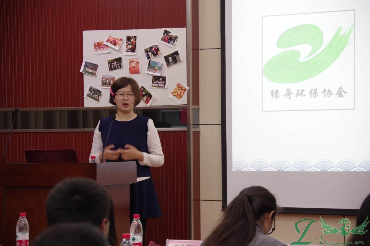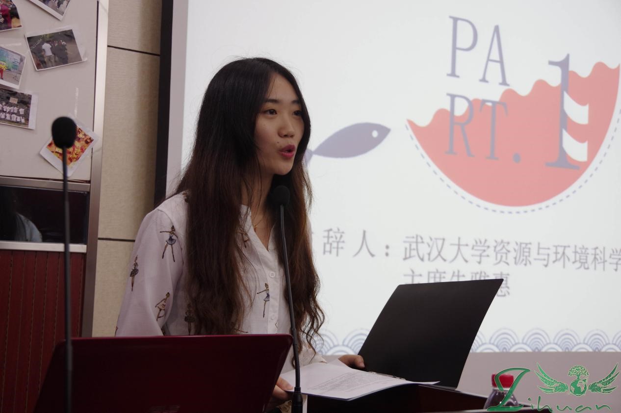 接下来是澳门美高梅 绿舟环保协会会长余思琦学姐发言。其间,学姐介绍了绿舟环保协会的发展过程及举办的活动。余思琦学姐提出,绿色是一种简单的践行方式,是可以由点滴养成的习惯。“虽然我们举办了很多绿色活动,譬如废旧电池回收、清扫珞珈山等,但是绿色不应该只局限于活动之中,环保不该只是口号,而是大家共同的意识与责任。”余思琦学姐简单的一席话却是让绿色的理念深入人心。
