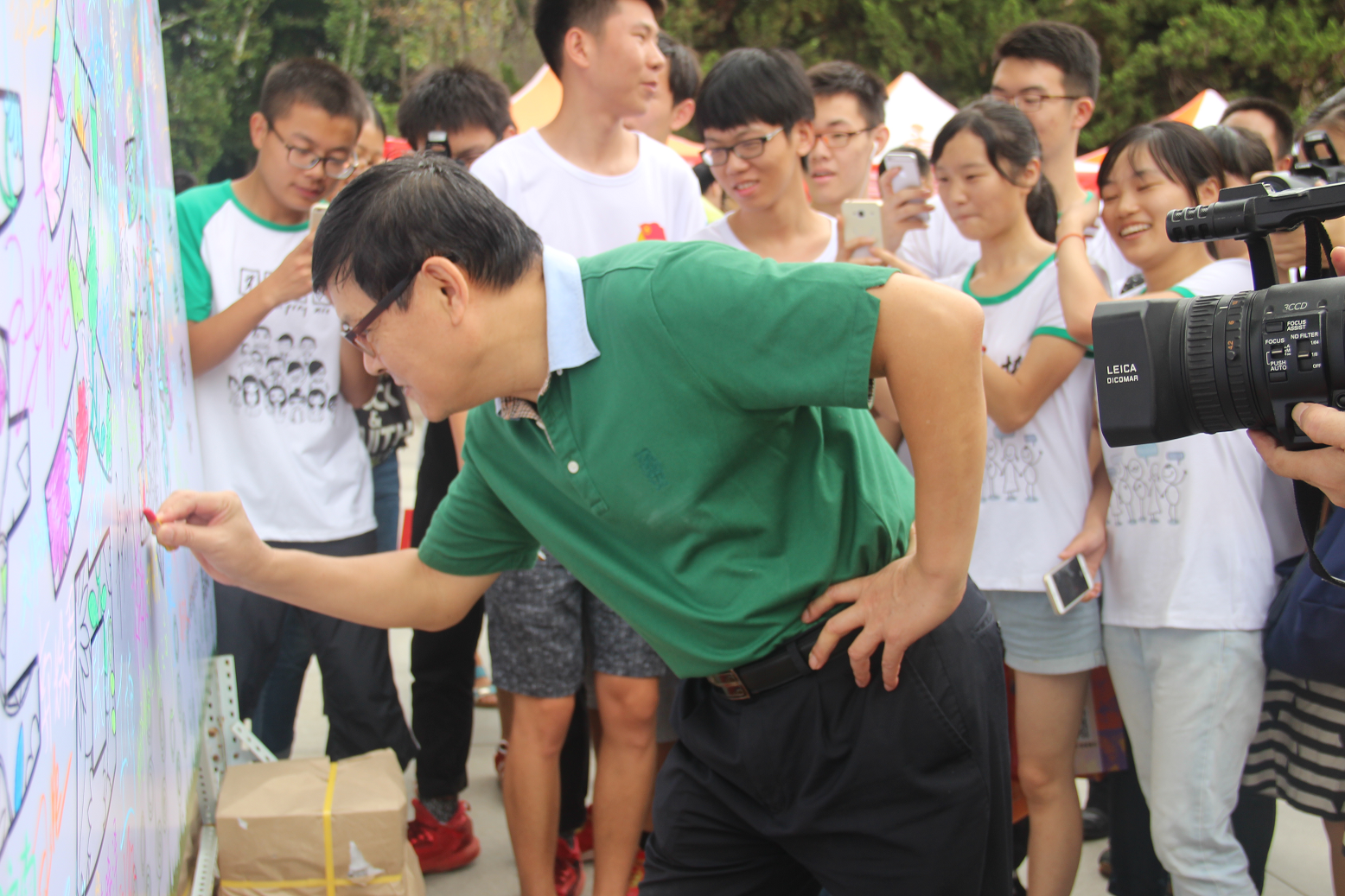 将近11点时,澳门美高梅 校长李晓红前来巡视迎新工作并看望新生们。听闻资环人的创意,李晓红校长也拿起蜡笔,在展板上为珞珈着色,并以“不忘初心,自强弘毅”激励新生们在武大去实现自己的梦想,成就自己的未来。