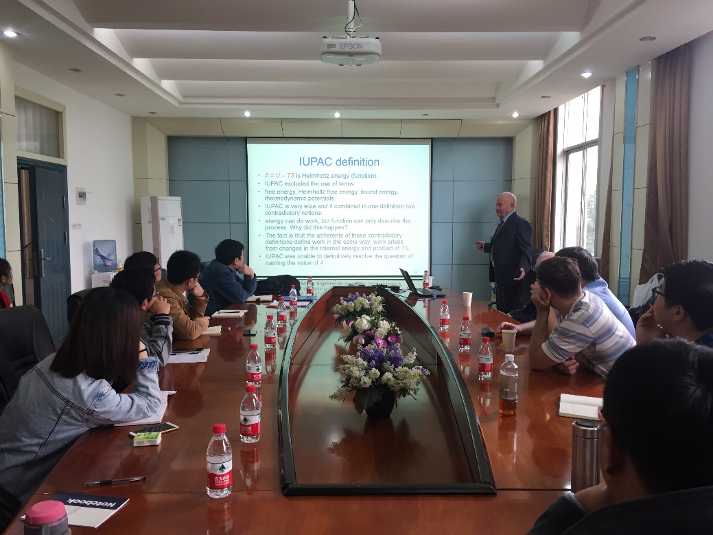 7日上午在澳门美高梅 301会议室,Nikolai Bazhin教授做了题为“Heat and work of the chemical systems”的学术报告,阐述了基础化学热力学的相关理论,提出了从新的角度考虑机械,渗透和电流等化学系统的机制及其在环境过程研究中的应用。Victor Plyusnin教授介绍了关于二硫醇铜和镍配合物的光化学研究,详细介绍了实验在飞秒激光光谱、闪光光解、稳态光解、ESR光谱等方法下二硫醇配合物的快速光化学过程。Viacheslav Glebov教授介绍了铂族金属配合物的光化学动力学机制和该研究应用于治疗肿瘤的前景。7日下午报告会在教学楼第二栋104教室举行。Viacheslav Glebov教授做了题为“Uranyl Modified Titania as a Visible Light Photocatalyst”的报告。高级研究员Ivan Pozdnyako博士先后讲解了光化学与光谱的基本原理和Fe(III)物质与腐殖物质对微污染物的光氧化作用。环境科学专业、环境工程专业、印刷与包装专业的约60名研究生听取了上述三个报告。该系列报告系作为“现代环境科学”课程的外教授课内容而设计的。