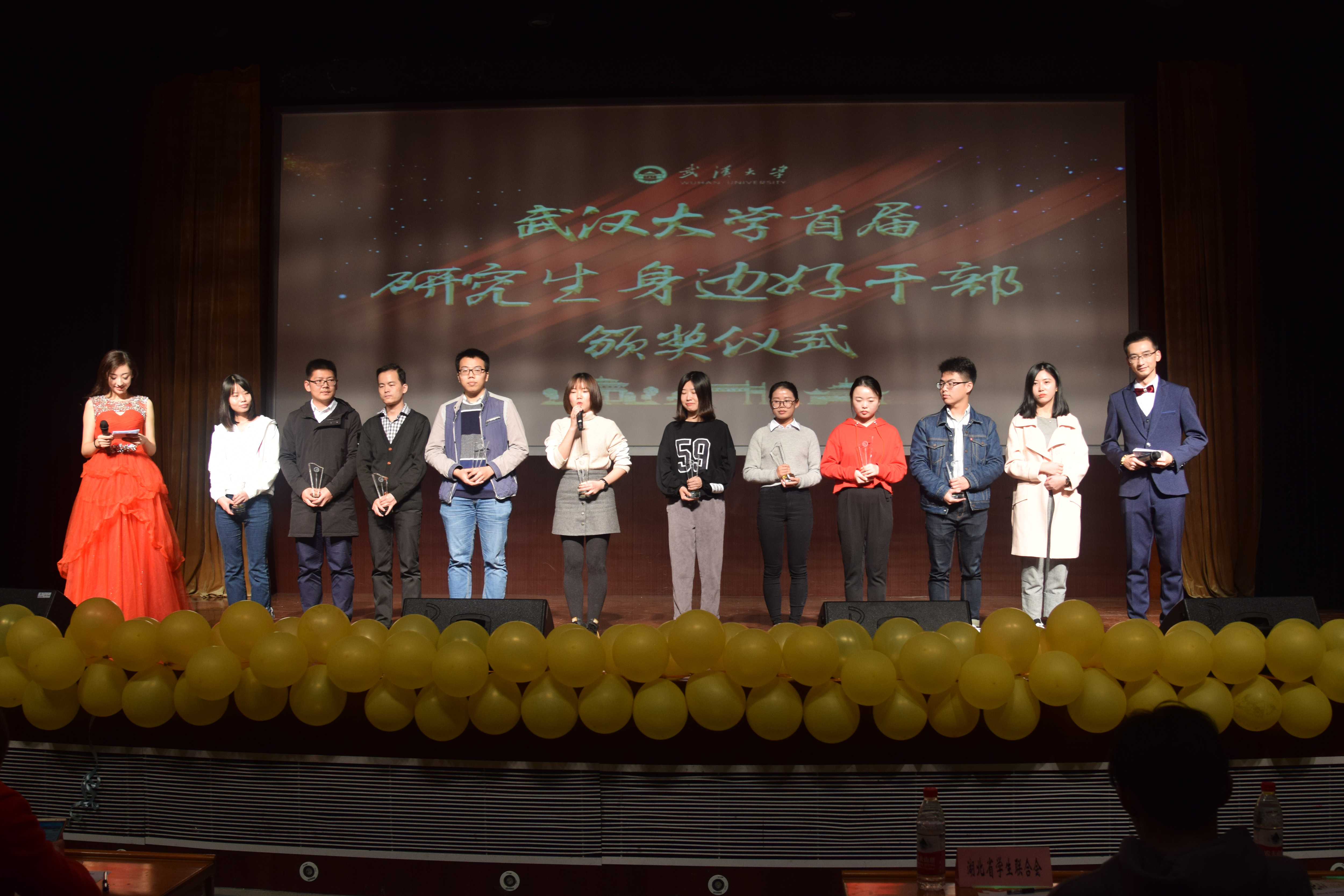 (左三为澳门美高梅 博士生蒋惠梦) 为深入学习贯彻习近平总书记系列重要讲话精神,喜迎党的十九大,积极响应党的号召,端正研究生学生干部作风,将研究生会打造成“信念坚、作风正、服务实、能力强”的高素质学生干部团体,校团委与校研究生会于7月至10月举办了“研究生干部该是什么样”大讨论与“研究生同学竟需要哪些服务”大调查。活动期间,研会组织了问卷、网上意见征集等线上调查以研究“研究生干部该是什么样”和“研究生同学究竟需要哪些服务”;线上调查之后,在22个培养单位内分别组织茶话会,就思想道德、研究生教育、身心健康等进行探讨与自省;茶话会之后,通过教师和同学推荐,在全校研究生中筛选出40位典型学生干部候选人,在全校范围进行“研究生身边好干部”评选活动,根据每位候选人在线上公开投票(占比60%)和线下主席团评审打分(占比40%)综合得分,最终评选出十大研究生身边好干部。 晚会现场,好干部们在视频和现场感言中为我们展示了干部风采和为同学们无私奉献的襟怀,是所有研究生干部学习的榜样。“首先,非常感谢支持我工作的各位老师与同学,其次,我有几句话想跟大家共勉,‘心中有阳光,脚下才有力量;青年兴则国家兴,青年强则国家强,希望大家在以后的学习与生活中能够不忘初心,牢记使命、脚踏实地、砥砺前行,终有一天大家都能够仰望星空’”,蒋惠梦现场如是感言。
