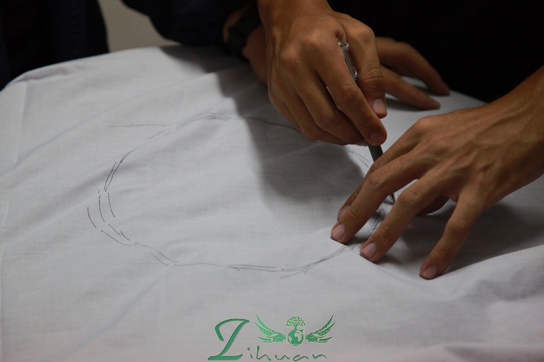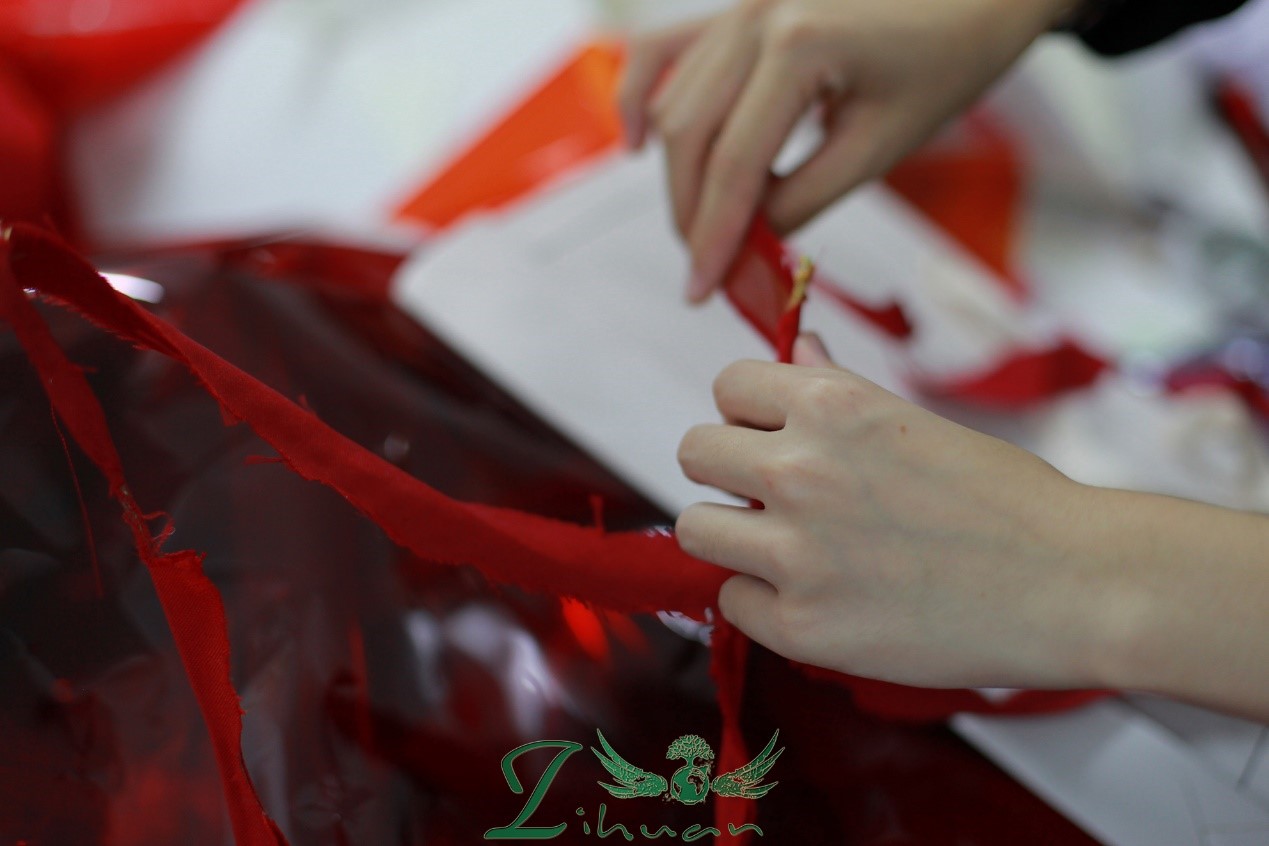 在信部8舍的顶楼,隐匿着资环院不为人知的服装工作室。晚上六时许,小编敲开了工作室的门。放眼望去,面积并不大的工作室内,四散着杂乱的布料,十余名同学在小小的空间内用自己的创意和手艺为金秋的服饰做最后的修改。难以想象,在极其有限的时间内,从最初的设计稿绘图,到眼花缭乱的衣服材质的挑选,到服饰实物的裁剪和定型,一套套别致而新颖的服饰便在这朴实无华的甚至略显杂乱的工作室中诞生。