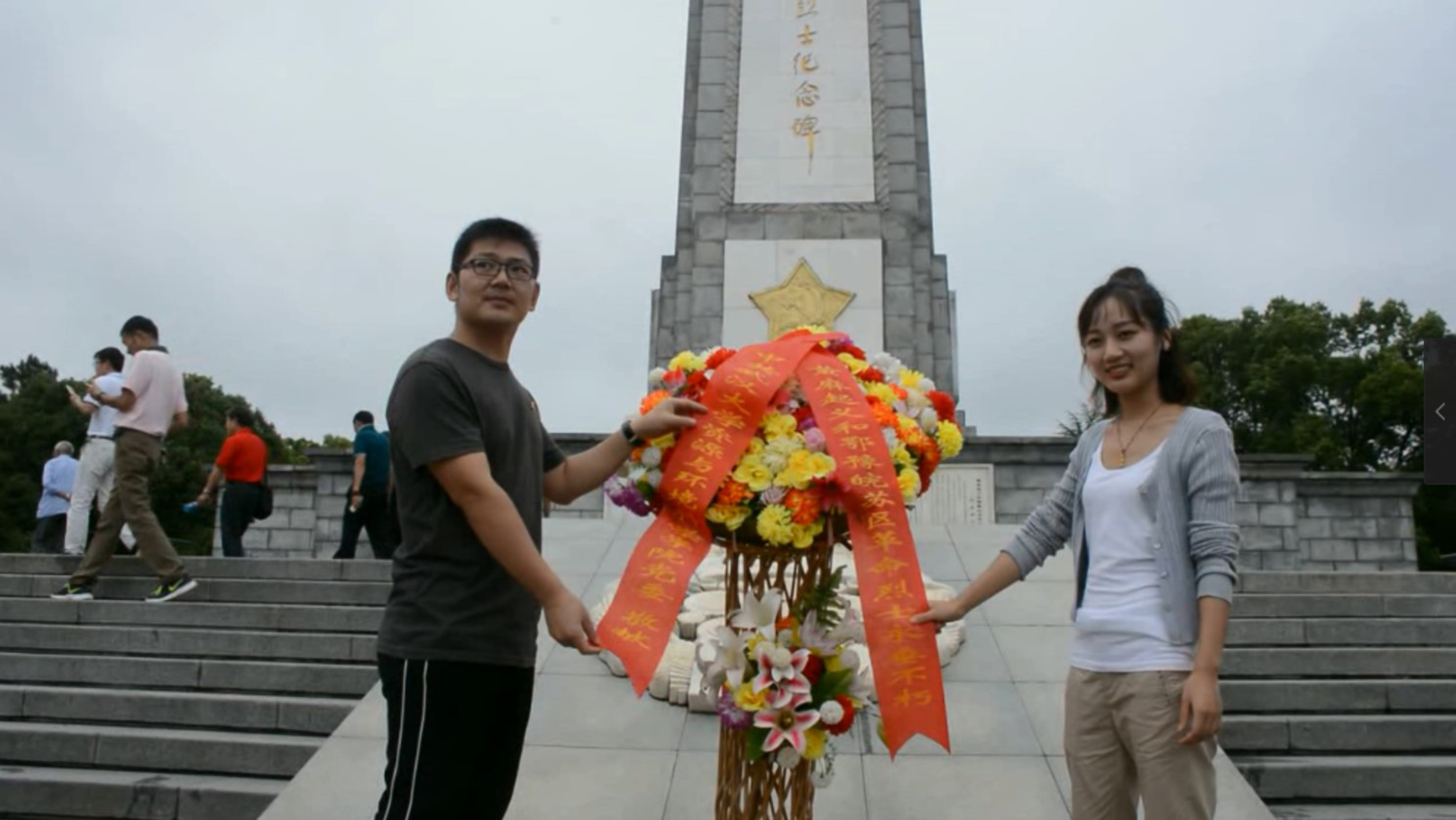 活动第一项,整理缎带。澳门美高梅 环境类2016级博士研究生党支部、地学土管类2016级博士研究生党支部及环境工程专业(学术学位)2016级硕士研究生党支部三个党支部成员代表中共澳门美高梅 党委向黄麻起义和鄂豫皖苏区革命先烈进献鲜花,环境类2016级博士研究生党支部书记蒋惠梦同志、地学土管类2016级博士研究生党支部书记银超慧同志上前整理系于鲜花上的缎带,以示对革命先烈的尊敬。