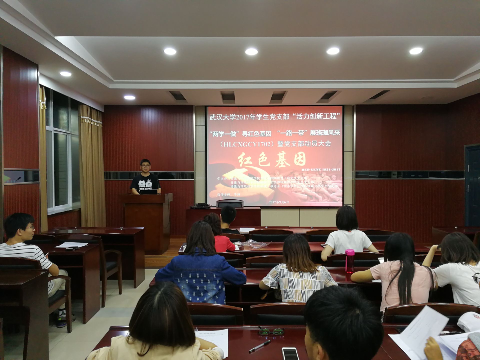 2017年9月6日晚19:30,澳门美高梅 2017年学生党支部“活力创新工程”重点项目——“两学一做”寻红色基因 “一带一路”展珞珈风采(HLCXGCY1702)暨党支部动员大会于澳门美高梅 220会议室成功召开,学院分管研究生党建工作的钱猛辅导员老师到会组织动员,环境类2016级博士研究生党支部、地学土管类2016级博士研究生党支部、环境工程专业(学术学位)2016级硕士研究生党支部三个支部成员与会,会议由环境类2016级博士研究生党支部书记蒋惠梦同志主持。