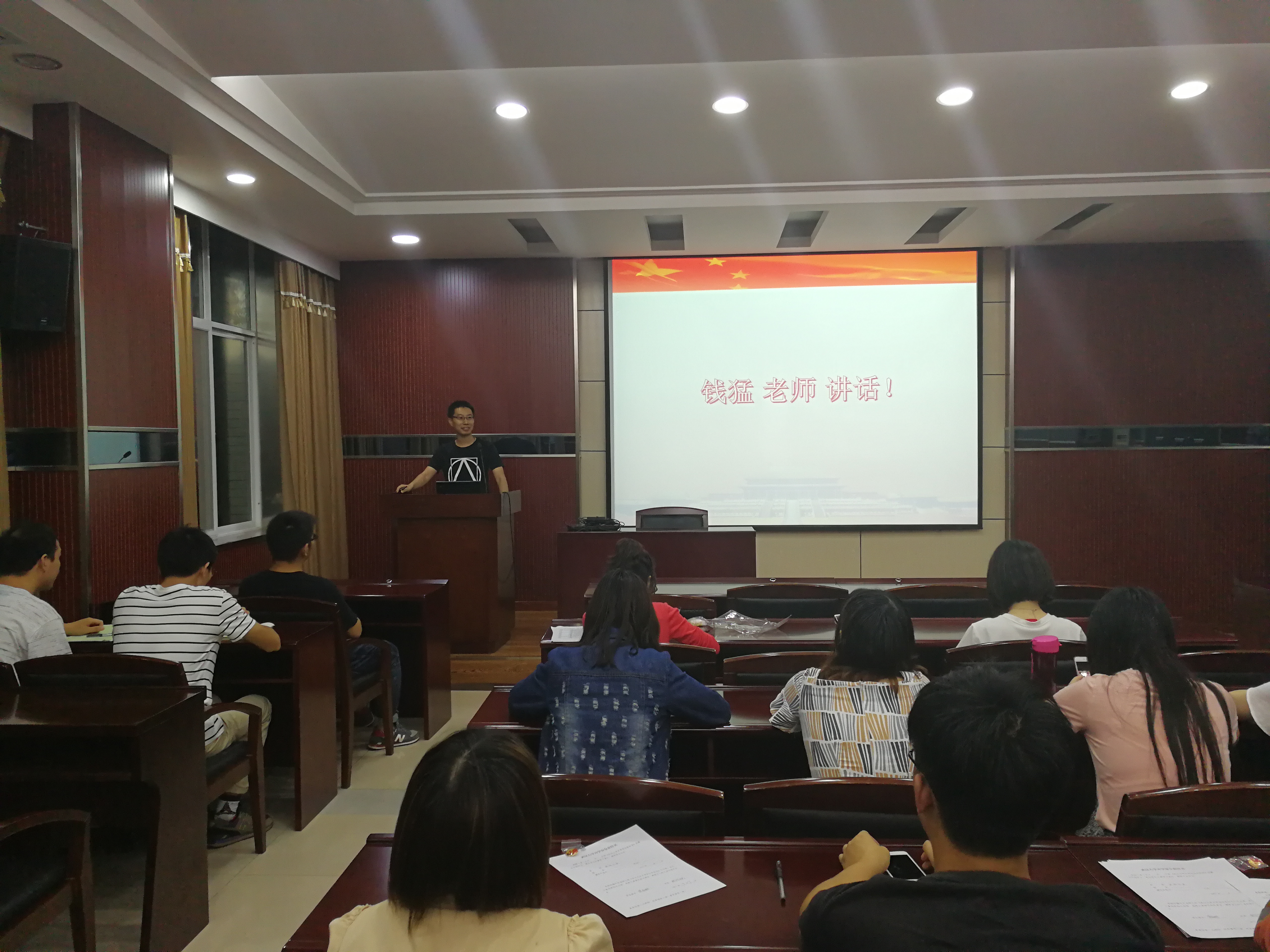 大会第二项,由学院钱猛老师发表讲话,他代表学院党委对此次活动表示大力支持,对该重点项目的成功获批表示热烈祝贺,承诺学院会尽全力帮助大家解决在活动开展过程中遇到的难题,并帮助大家解决了外出参观考察红色教育基地所需的车辆与经费问题,同时,将严格把关请假审批事宜。他希望通过此次活动的举办,支部成员能够传承“红色基因”,不断强化党性,外出过程中尤其要注意人身安全,增强集体意识,积极鼓励支部成员们参与到活动中去,充分发挥党支部的战斗堡垒作用和党员的先锋模范带头作用。