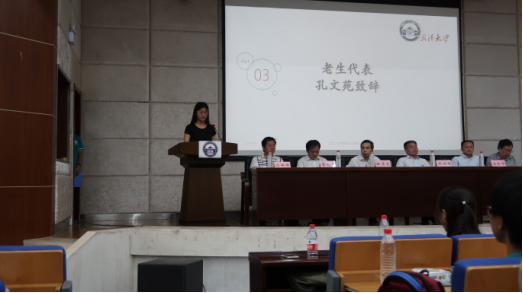 2015级的孔文苑同学作为老生代表,以学生的视角,与新生们分享了自己大学三年来的心得体会,并给新生提出了几点诚恳的建议。一是努力学习,抓住一切可利用的学习资源。二是积极参加活动,提高能力。三是做好个人规划,凡事提前做准备。同时,孔文苑学姐强调了“自强、弘毅、求是、拓新”的校训,希望各位新生秉持校训的精神,在未来四年收获自己的辉煌。