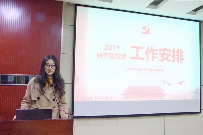 首先,学院党委副书记江尧林对上学期以来的学生工作进行了总结,对老师和同学们所做的工作、取得的成绩表达了充分的肯定。然后,江尧林从思想政治教育与党建,学术科技与创新实践,日常事务管理与服务,安全稳定,自身建设五个方面向大家布置和讲解了2019年研究生的工作要点。
