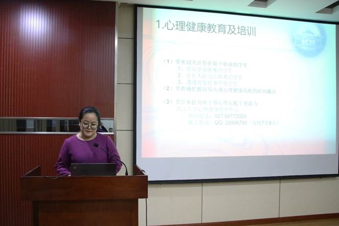 接着,辅导员华翔老师向同学们重点介绍了研究生心理健康教育与培训、研究生学科竞赛系列活动、研究生挂职锻炼,以及研究生毕业、就业工作的具体安排与细则。辅导员梅菲老师强调了研究生党建工作的任务要点,从党员发展、支部风采大赛、研究生学术科技节以及弘毅讲坛向同学们做了补充。