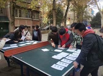 第1站:德仁广场(小试牛刀——党建知识问答),参赛队伍跑至工作人员处打卡,完成工作人员事先准备好的有关党章、武大红色历史以及党的十九届四中全会等会议精神相关的考察题目后方可前往站点2。