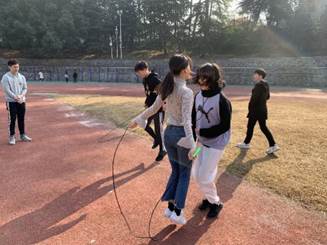 第5站:九一二操场(疯狂来往一起跳——你说我猜+跳绳),这是一个考验队员默契与运动能力的挑战赛,“你说我猜”考验了大家的默契,拉近了大家的距离,“跳绳”项目需要大家相互配合,共同承担,很好地增强了大家的凝聚力。