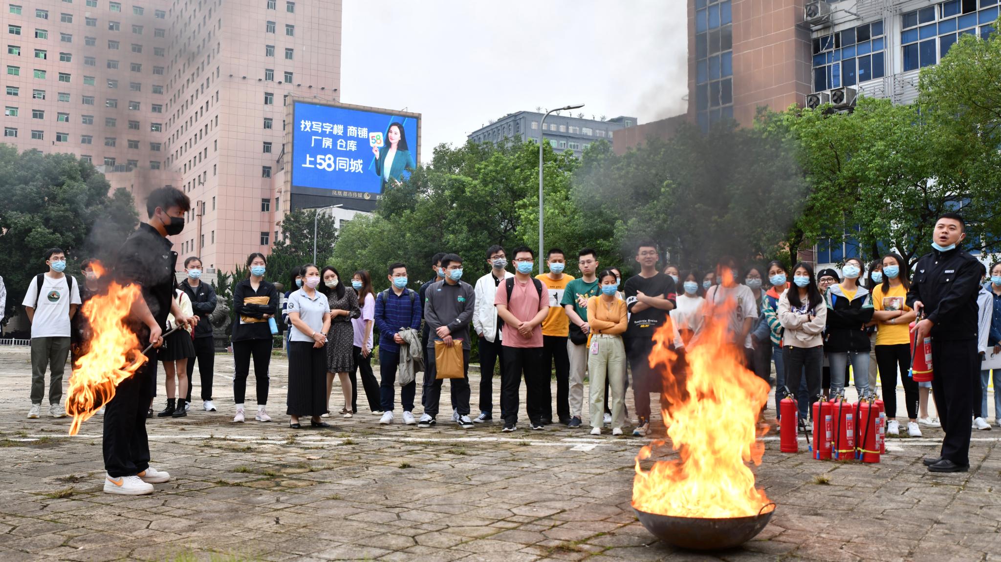 保卫部严旭及谢子涵带领大家移步户外,进行了消防相关培训及应急演练。