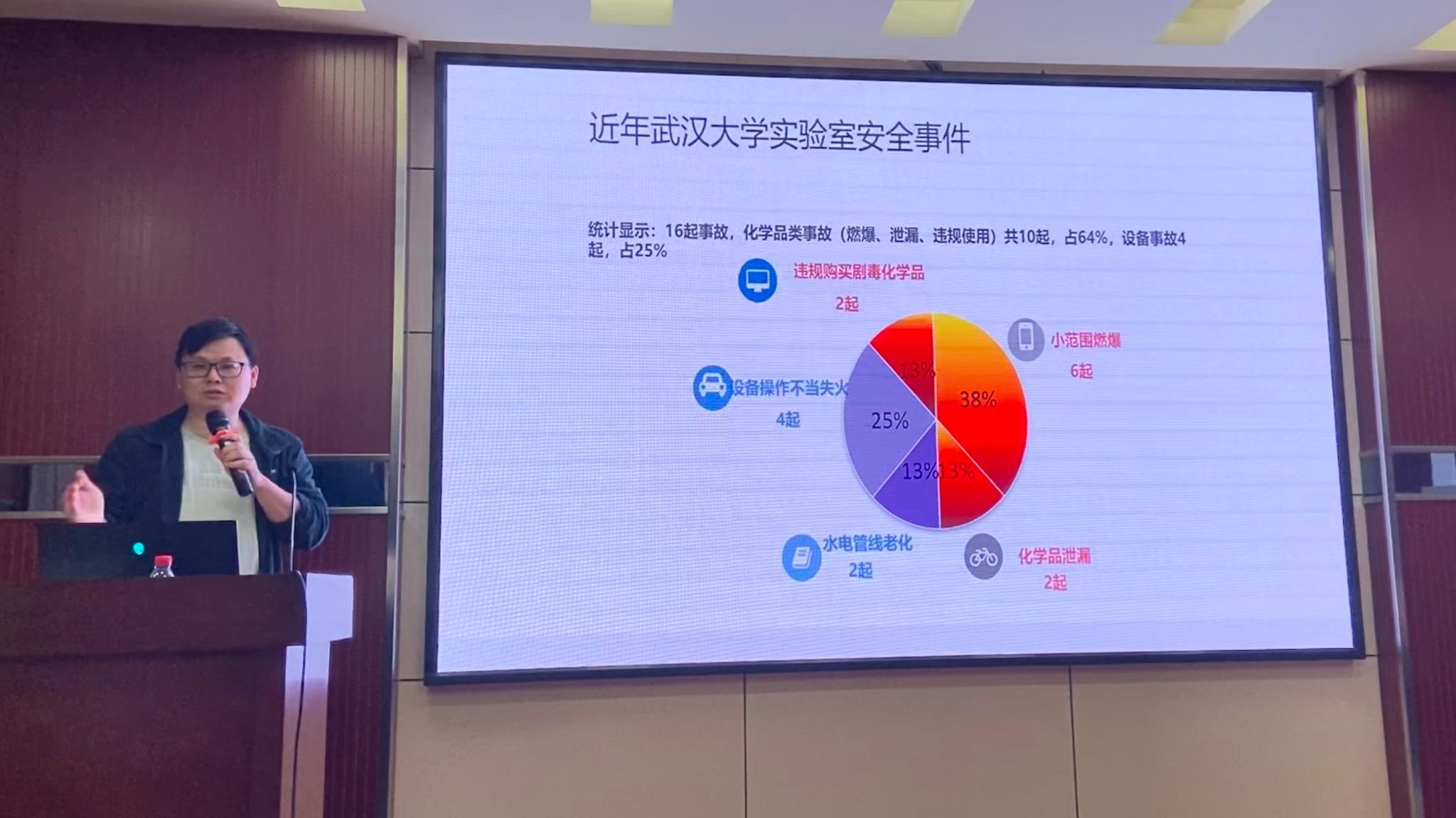 实验室与设备管理处安全管理办公室主任孙平从高校实验室安全事故典型案例出发,强调了实验室安全的重要性;介绍了我校实验室安全主要隐患、相关规章制度以及危化品采购平台的相关情况。
