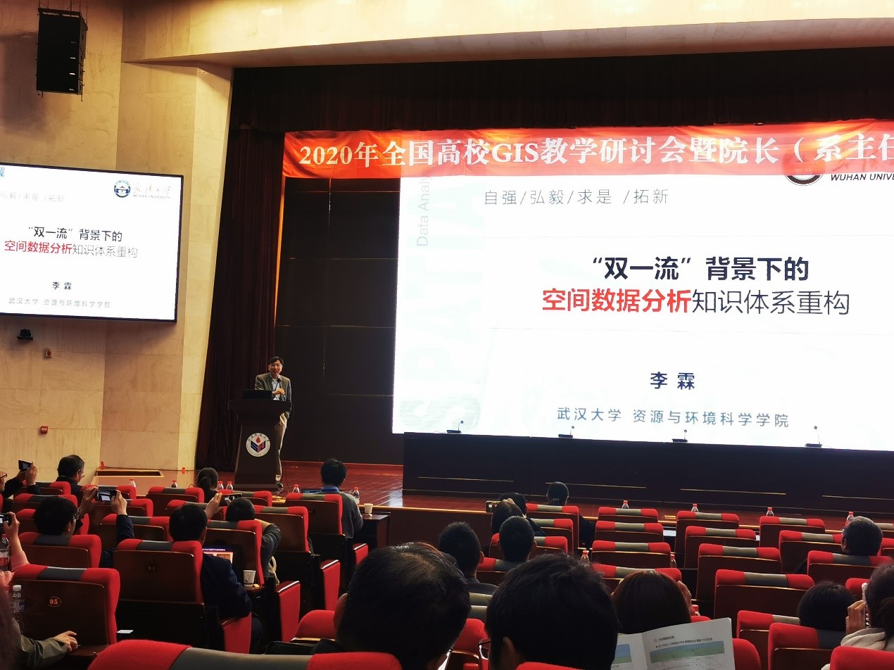 学院李霖教授做了题为“‘双一流’背景下的空间数据分析知识体系重构”的报告,结合《空间分析》等多本教材的编著经验和多年授课的教学体会,围绕双一流学科建设,系统地梳理和分析了空间数据分析知识体系,为国内同行提供启发和借鉴。