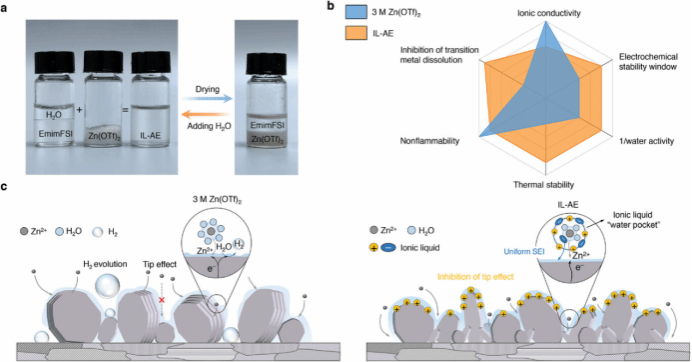 图4. 离子液体包水策略构筑高性能锌离子电池绿色可回收电解液。图片来源于作者。