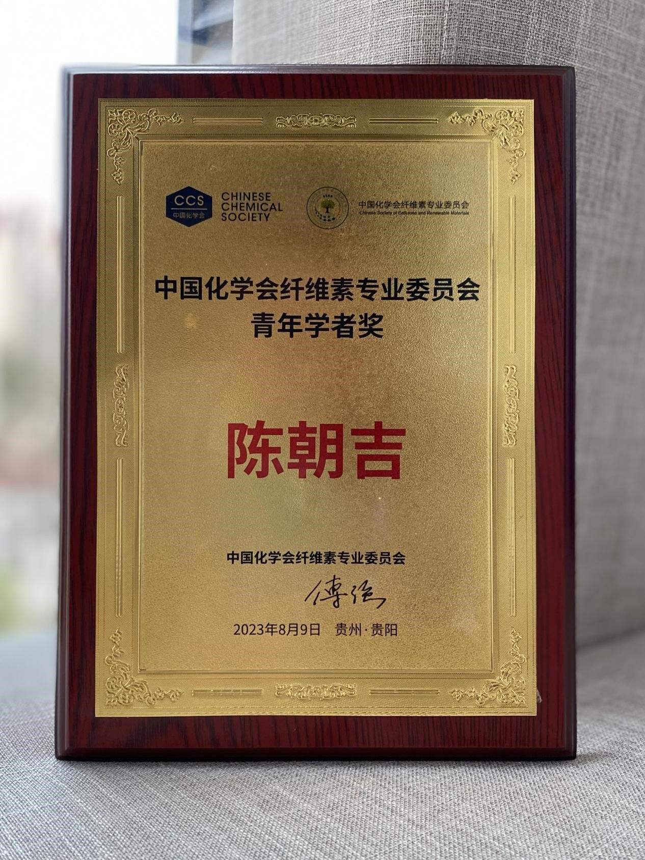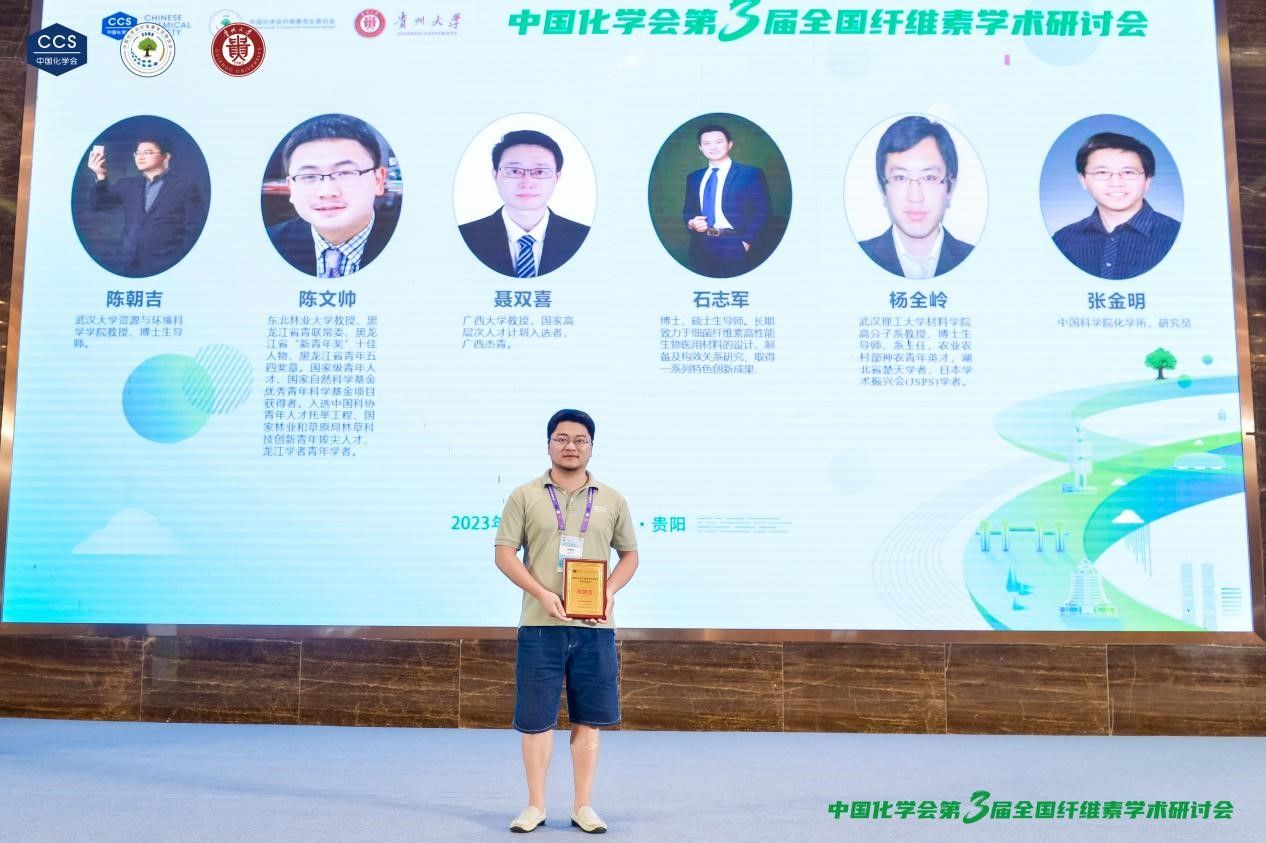 2023年8月9日-11日,中国化学会第三届全国纤维素学术研讨会在贵州贵阳市召开,此次会议主题为“创新纤维素高效利用,助推双碳目标实现”,主要围绕纤维素及可再生资源高效利用在新时代促进国民经济和社会发展中的重要作用,集中展示我国纤维素科学与技术的最新研究进展和发展趋势展开。会上,陈朝吉教授荣获“中国化学会纤维素专业委员会青年学者奖”。