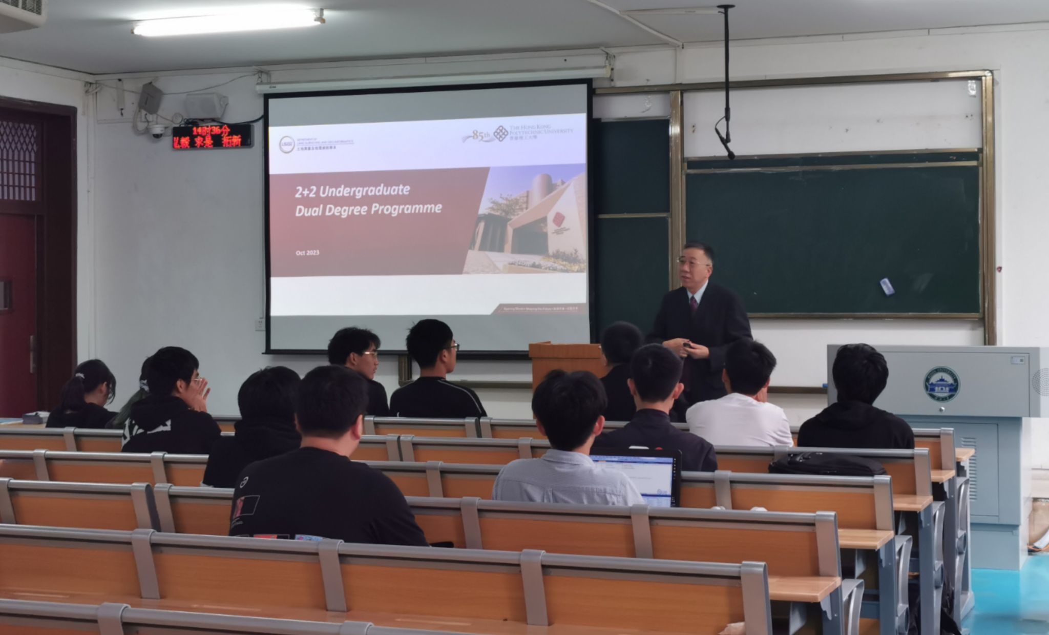 12日与13日下午,陈武教授一行面向大三、大四以及有意向攻读硕士和博士学位的同学举办了宣讲会。陈武教授等人详细介绍了本科生2+2联合培养项目,以及硕士和博士招生奖学金机会。同学们学生们纷纷表示,这次宣讲会为他们提供了宝贵的指导和支持,使他们更清晰地了解了学术交流机会。