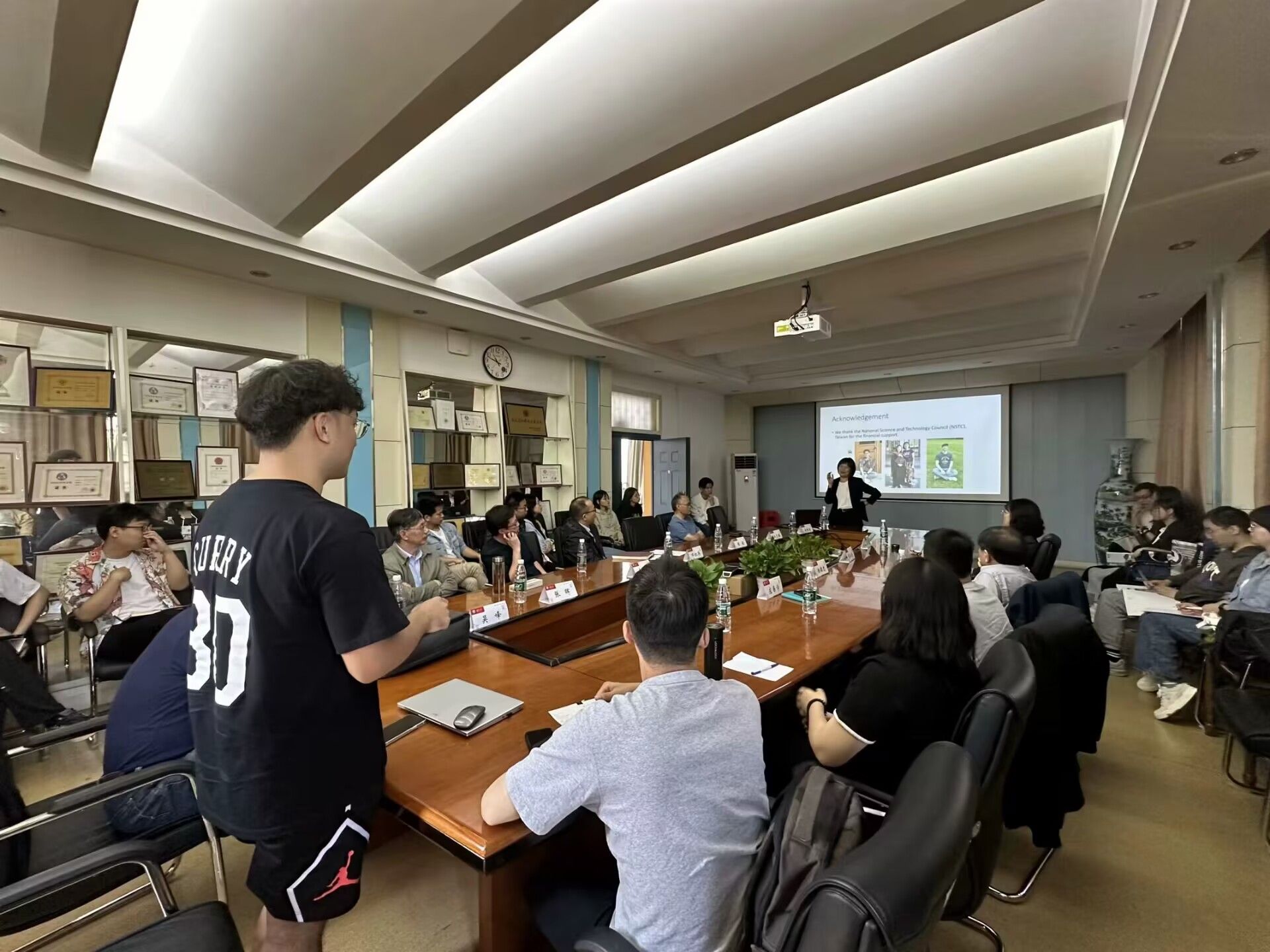 学术研讨环节,台湾阳明交通大学张淑闵教授作了题为“Development of a Molecularly Imprinted Hybrid for Highly Selective and Efficient Solid Phase Extraction of Bisphenol-A”的学术报告。张淑闵教授详细介绍了其团队所研制的印迹杂交体的制备方法、常见的环境因子对该印迹杂交体固相萃取双酚A效能的影响作用及该印迹杂交体高效高选择性提取双酚A所涉及的机理,并展望了该印迹杂交体的应用前景。其研究表明,该印迹杂交体可以直接用于固相萃取天然水体中的双酚A。报告结束后,张淑闵教授与两岸师生进行了深入的交流和讨论。
