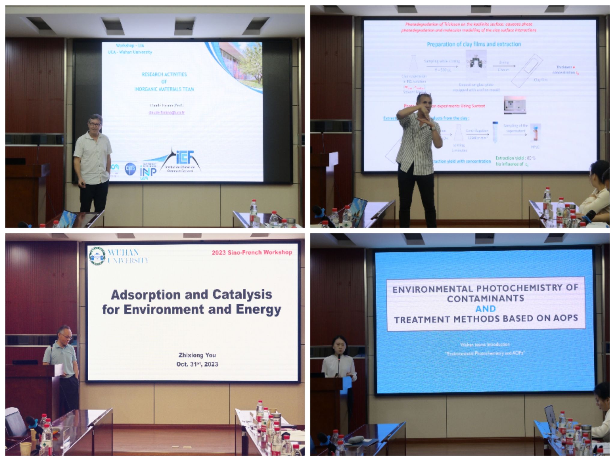随后,10月31日下午与11月1日上午,于学院320会议室组织开展中法学术交流活动。澳门美高梅 游志雄课题组博士生李梦韦,李进军课题组博士生蔡敏娟、潘聪、刘雅倩,吴峰课题组博士生王文宇和张晖课题组博士生康瑾作为学生代表分享了在博士期间的主要研究工作。期间,双方老师围绕几位同学的研究内容细致地分析和讨论,与分享的同学们深入探讨了工作细节和存在的问题,并提出了完善与改进意见。