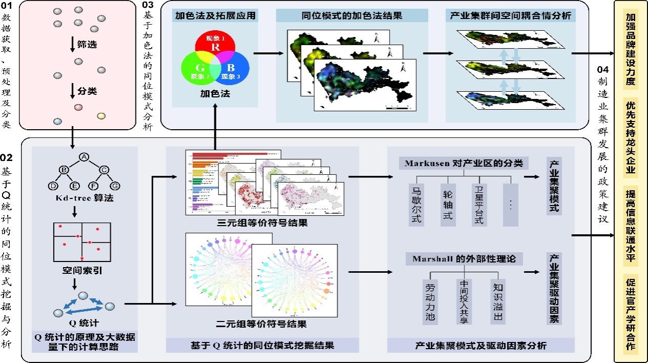 分析组一等奖作品《深圳市制造业企业的同位模式挖掘及其政策建议》的获奖团队由本科生李光磊、王一涵、王艺涵和徐雅婷组成,田晶和王一恒担任指导老师。作品综合运用Q统计和加色法对深圳的制造业企业的空间位置进行同位模式分析,从海量POI数据中识别出频繁共同出现的企业所属行业,由此揭示不同行业空间集聚的基本特征和规律,进而结合所在产业园区的发展情况对不同制造业企业聚集区提出产业布局优化建议,为其提供决策支持。