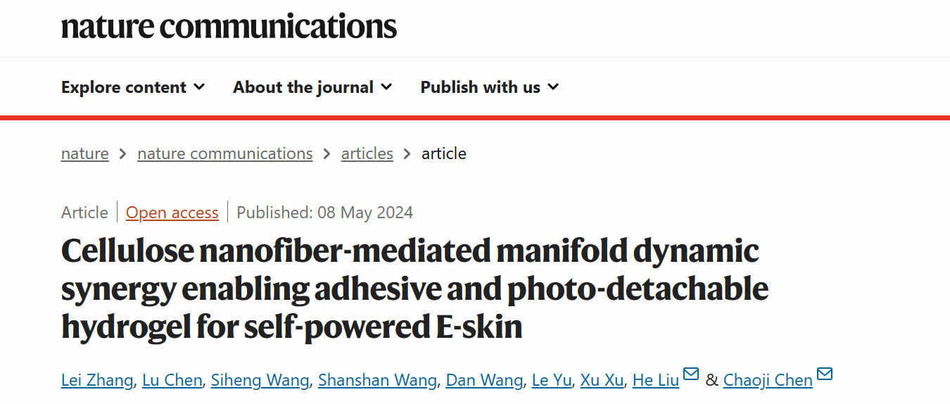 近日,国际综合性期刊《自然·通讯》(Nature Communications)在线发表了澳门美高梅 陈朝吉教授团队在生物质基功能凝胶材料领域的最新研究成果,论文题目为"Cellulose nanofiber-mediated manifold dynamic synergy enabling adhesive and photo-detachable hydrogel for self-powered E-skin"。