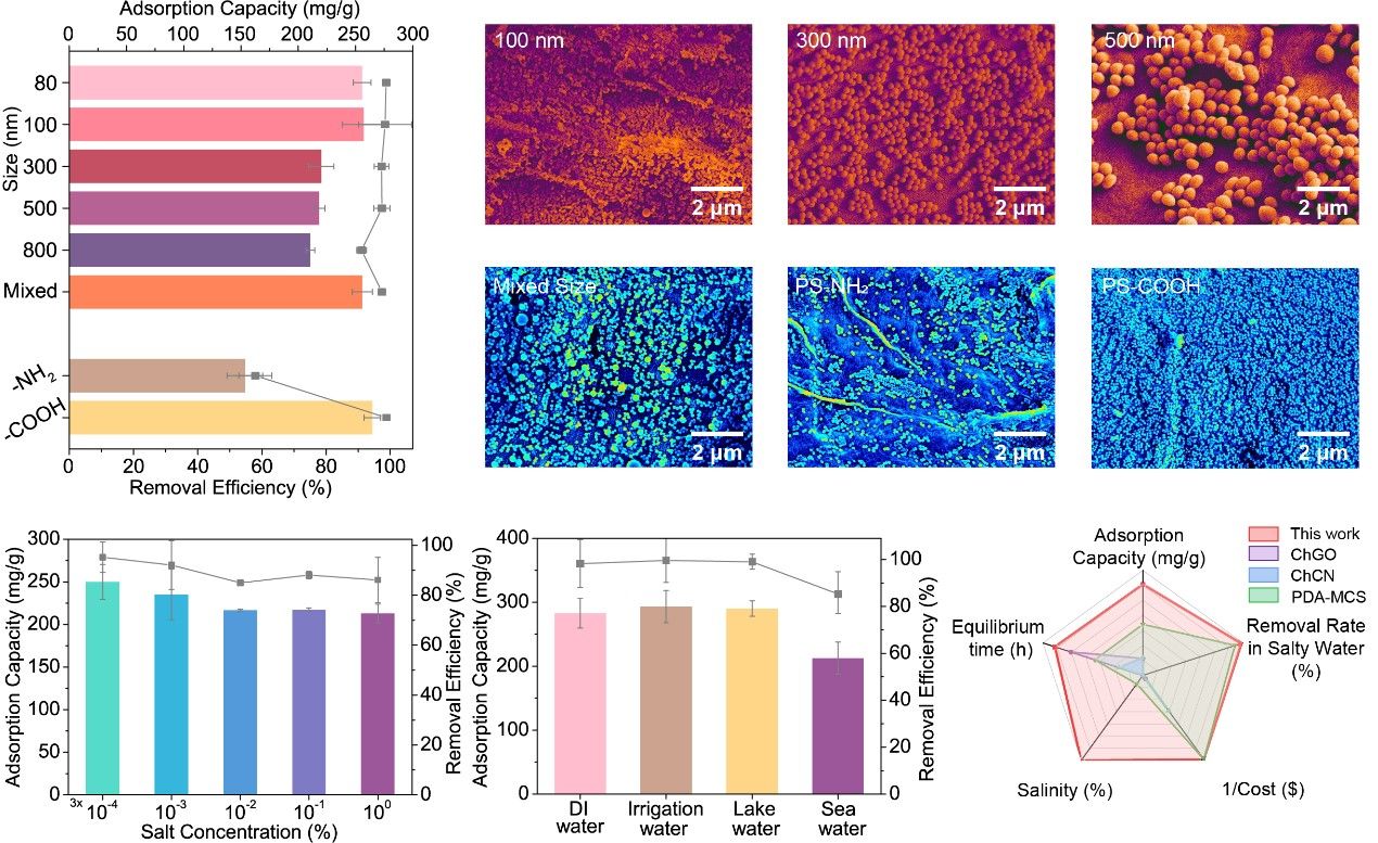微塑料已经无处不在,南极、深海、地下水、甚至人类胎盘中均有发现,对整个生态圈都造成了巨大威胁。目前微塑料的去除手段主要依赖污水处理厂拦截,而污水处理厂仅对大于20 μm的微塑料有约72%的去除率,相对较小的微塑料或者说纳米塑料的去除仍没有实际应用策略。吸附法是一种相对简单高效的方法,但传统的吸附材料难以去除直径小于3微米的微塑料,低成本、高效率的小尺度微塑料吸附材料开发已成为重要挑战。生物质原料具有多级纤维结构、丰富的官能团和良好的生物相容性,且来源广泛、天然可降解、价格低廉,是官能团和多级结构的天然共存体,在构建高性能吸附材料方面极具潜力。