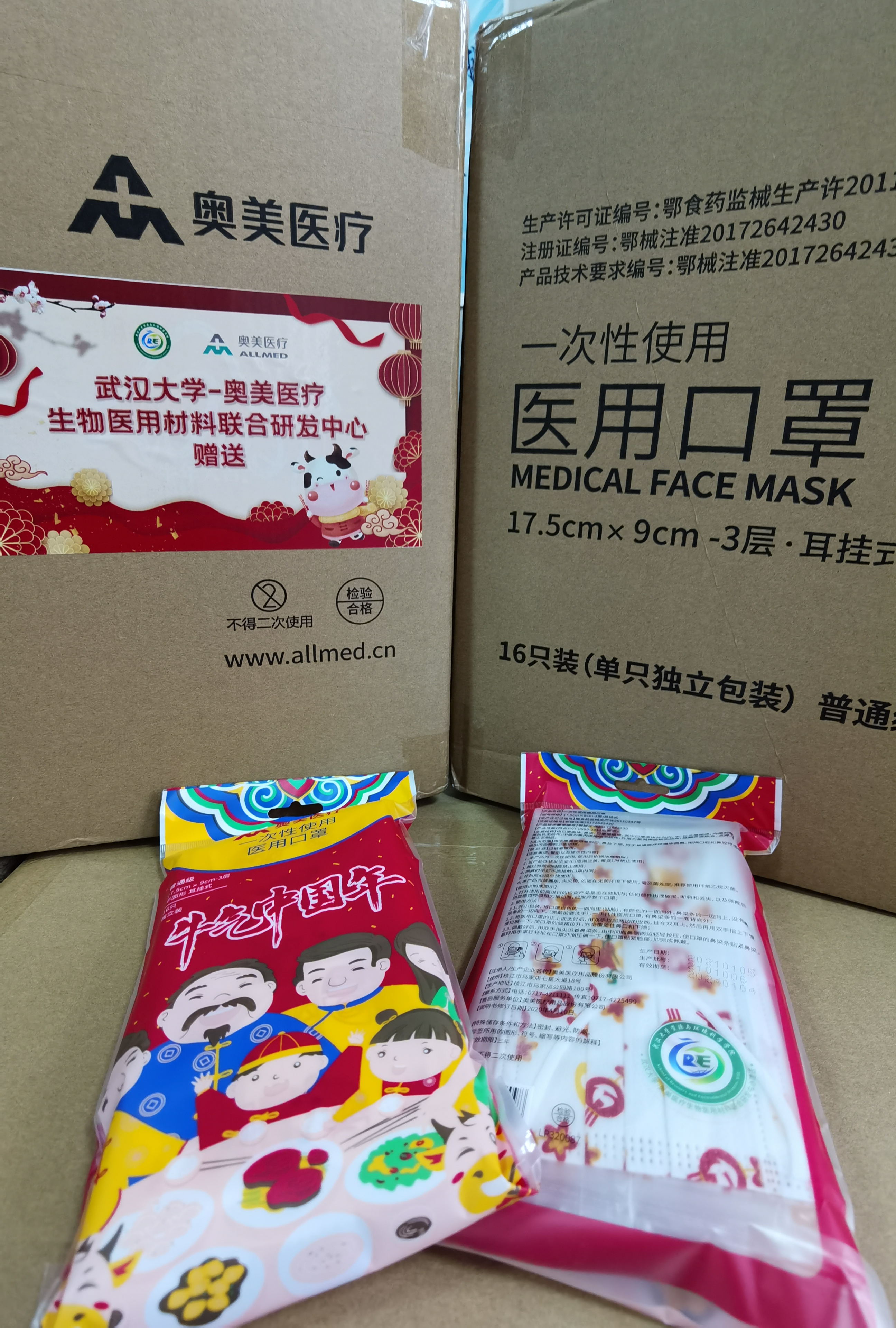 值此2021年春节到来之际,联合研发中心向学院师生赠送了新年装医用口罩,红红火火的设计图案满载了感激之情,希望在新的一年里,继续加强院企合作,深化技术交流,共同携手战胜疫情。