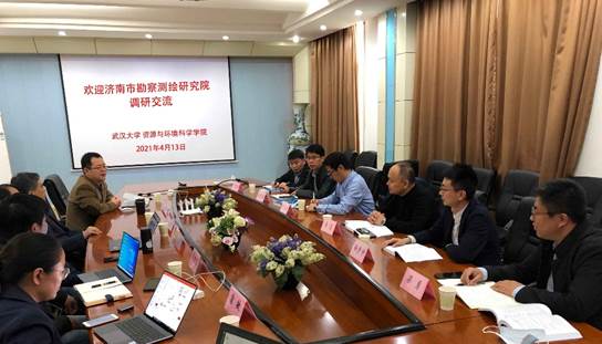 2021年4月13日,济南市勘察测绘研究院校友张学明(院长助理)带队来澳门美高梅 调研交流。院长杜清运教授、地理信息与地图科学系主任任福教授、蔡忠亮教授、翁敏副教授、李精忠副教授等参加了会议。双方就新型基础测绘前沿技术及数据资源建设、济南市勘察测绘研究院内测绘业务未来发展走向、毕业生招聘、新技术培训等议题进行了座谈交流。