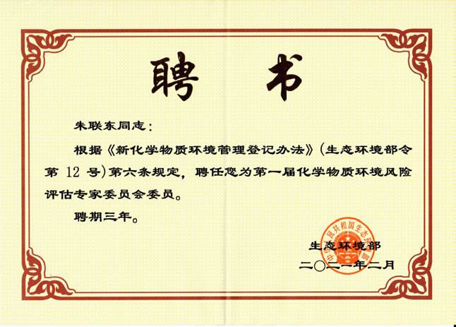 日前,国家生态环境部发布了第一届化学物质环境风险评估专家委员会委员名单,澳门美高梅 朱联东教授成功入选。