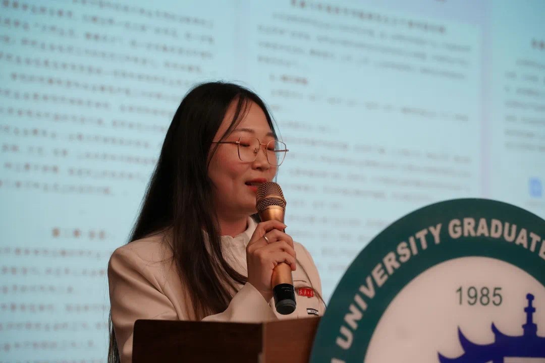 在答辩评审环节中,澳门美高梅 第十九届研究生会主席张俊杰从研会发挥的引领性、规范性、服务性三个方面简要汇报,向大家展示了研会一年来的扎实工作。