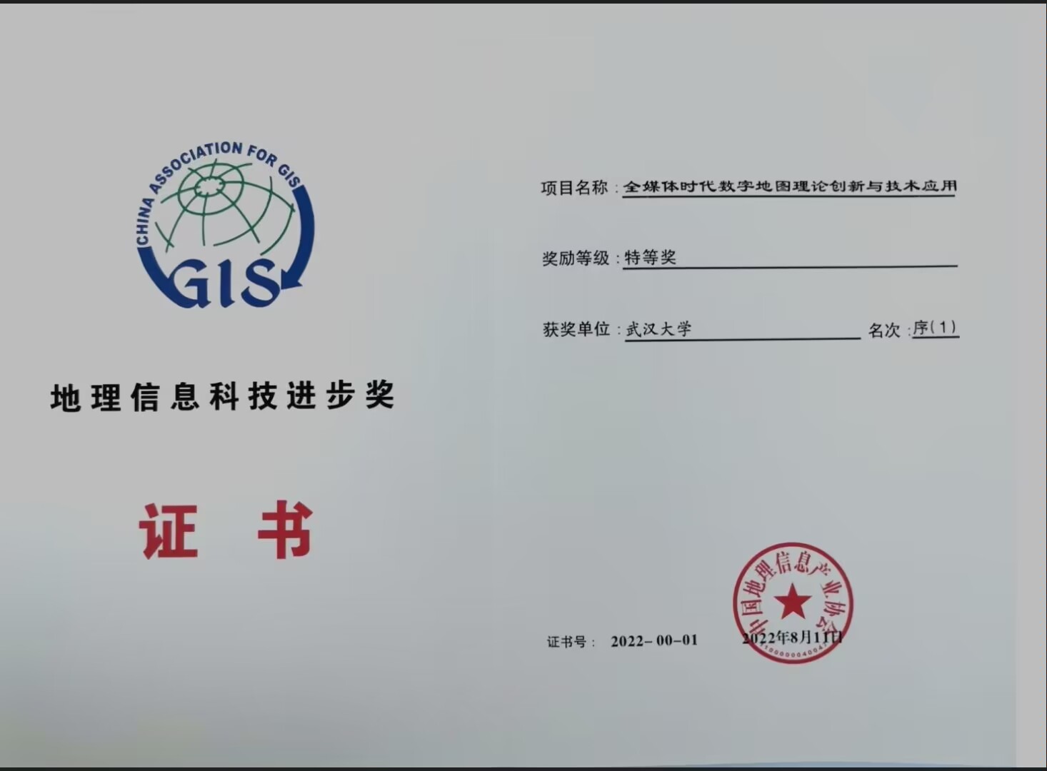 澳门美高梅 杜清运教授团队牵头的“全媒体时代数字地图理论创新与技术应用”项目荣获2022地理信息科技进步奖特等奖,团队主要成员有任福、庞小平、李连营、翁敏、王明军、程雄、黄丽娜和亢孟军等。