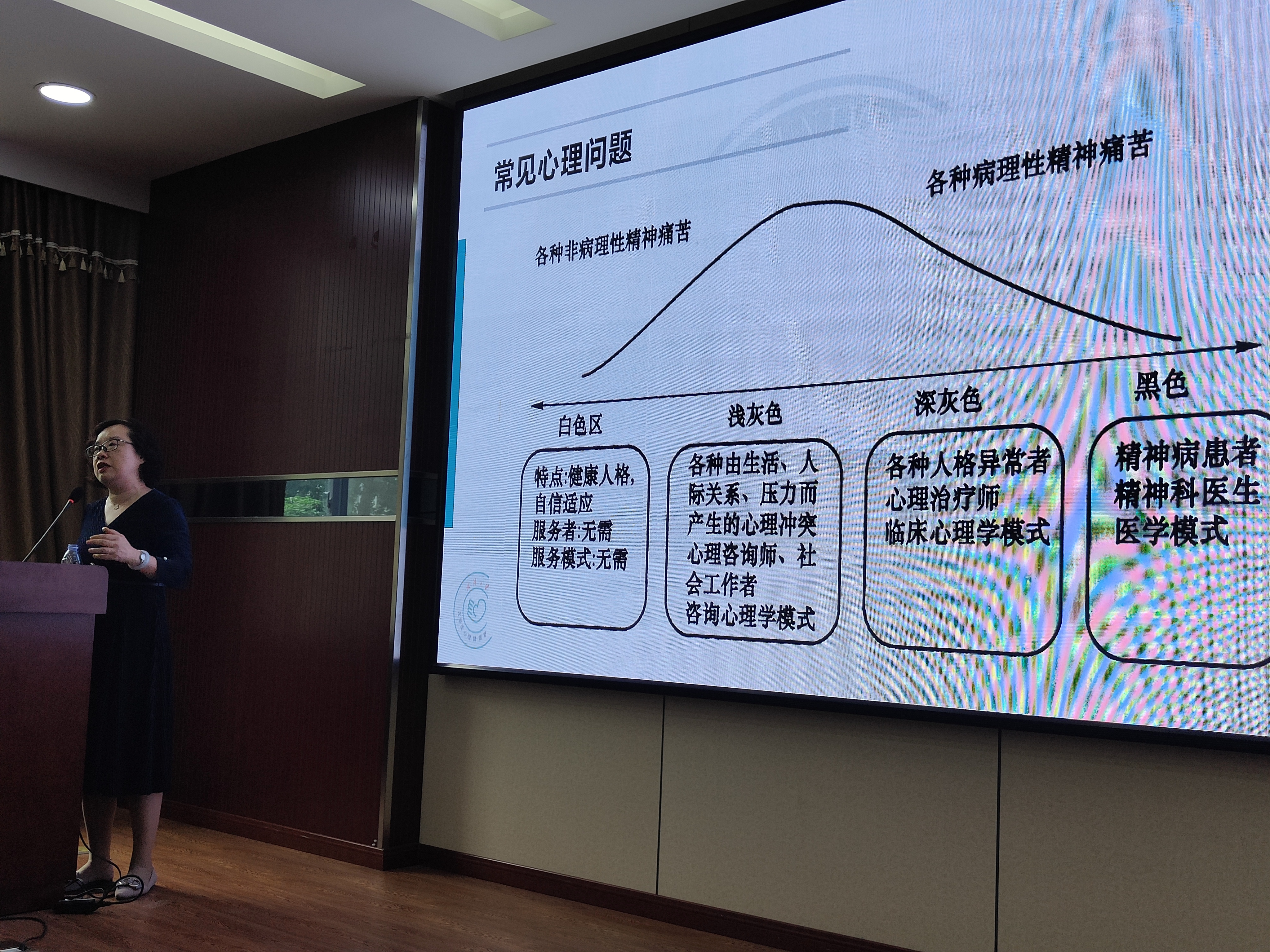 章星波主任的培训题为《健康心话题——学生常见心理问题及危机识别》。首先,章主任指出:“常见心理问题”是一个很宽泛的范畴,我们可以从行为、情绪、认知、社会功能四个方面进行初步判断,以区分心理困扰、心理障碍和重性精神障碍三种心理问题。同时,我们需要认识到,心理健康状态是一个不断变化的、富有弹性的相对状态,心理困扰是普遍存在的。