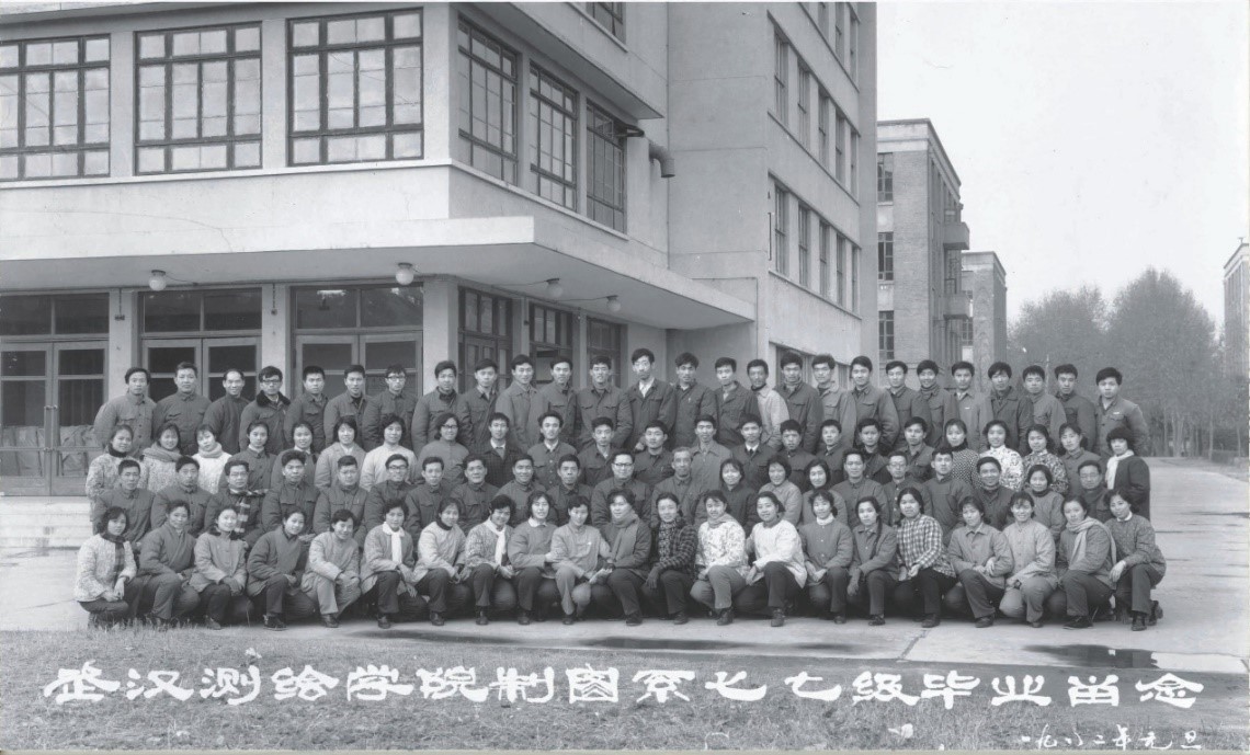 1982年1月,郭仁忠(后排右13)与77级同学毕业合影留念